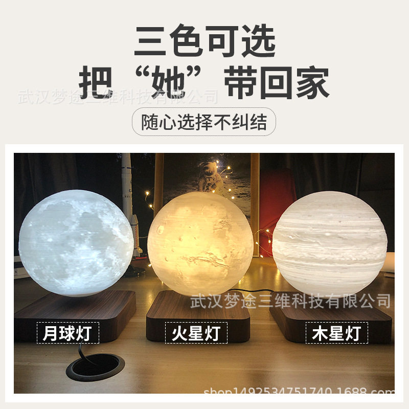 磁悬浮月球灯3D月亮灯创意科技生日礼物土星小夜灯家居卧室伴睡灯
