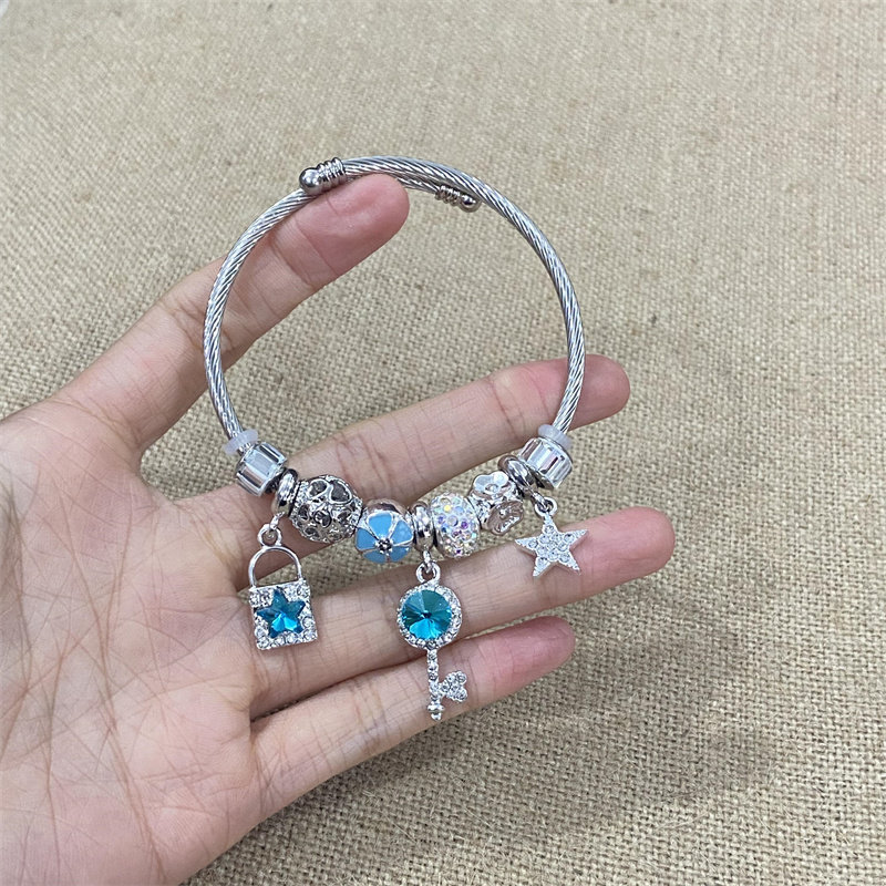 清冷梦核感蓝色星星钥匙手链甜美爆闪镶钻手镯开口可调节手饰配饰