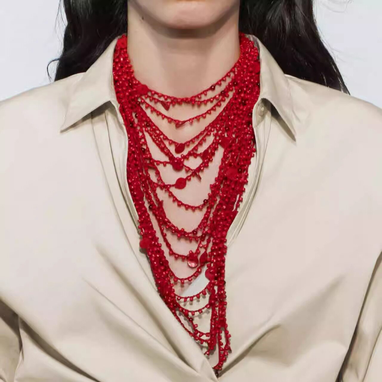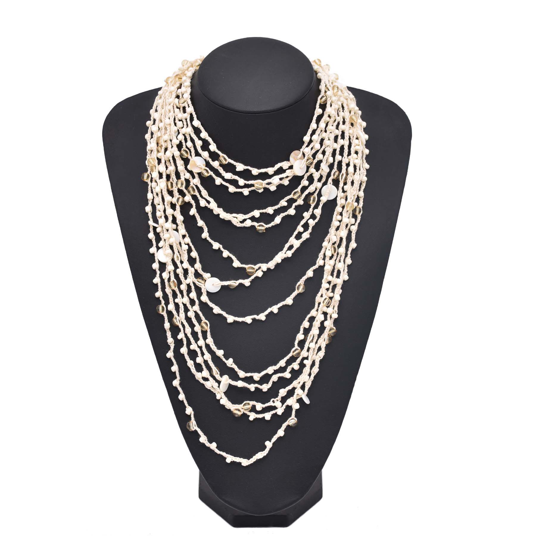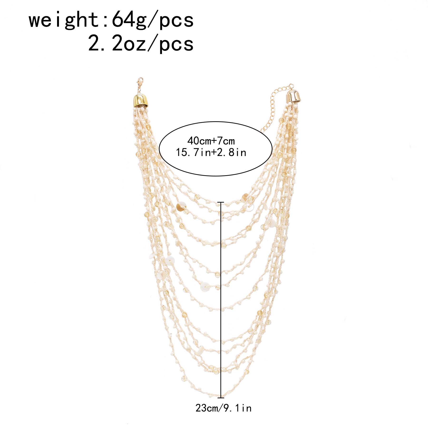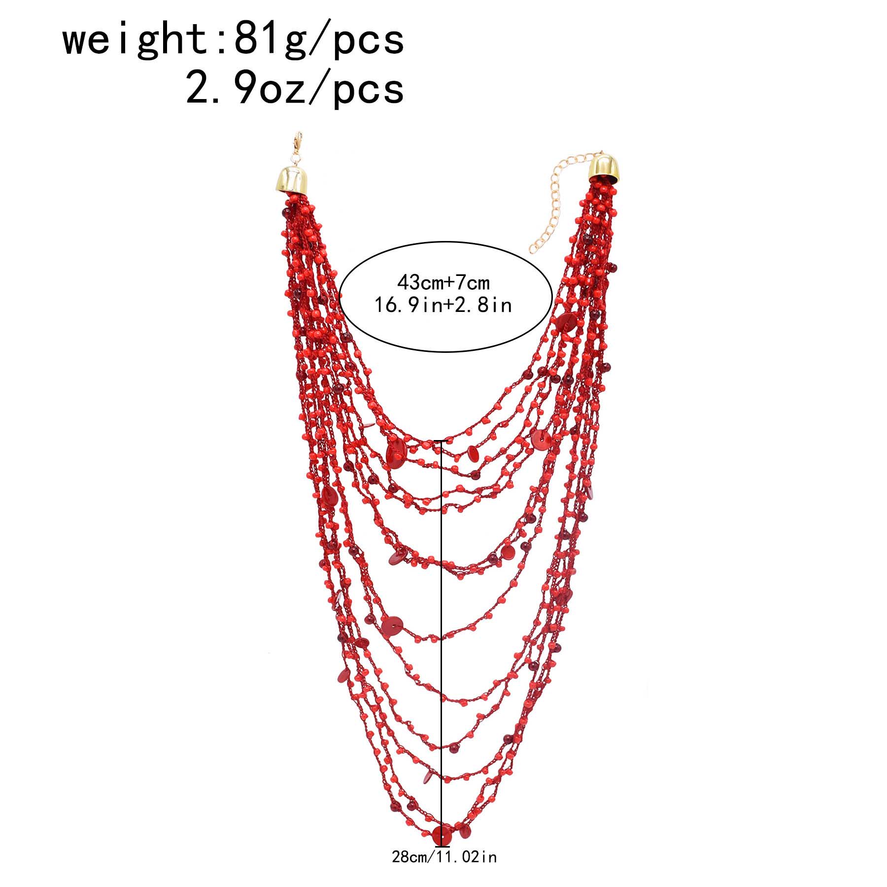 2026新款欧美风多层叠戴串夹杂小圆形木片珠项链夸张度假风锁骨链