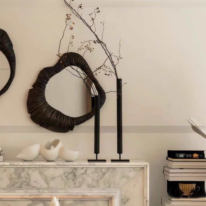 侘寂风法式铁艺烛台摆件玄关电视柜酒柜装饰黑色轻奢高级感细花瓶