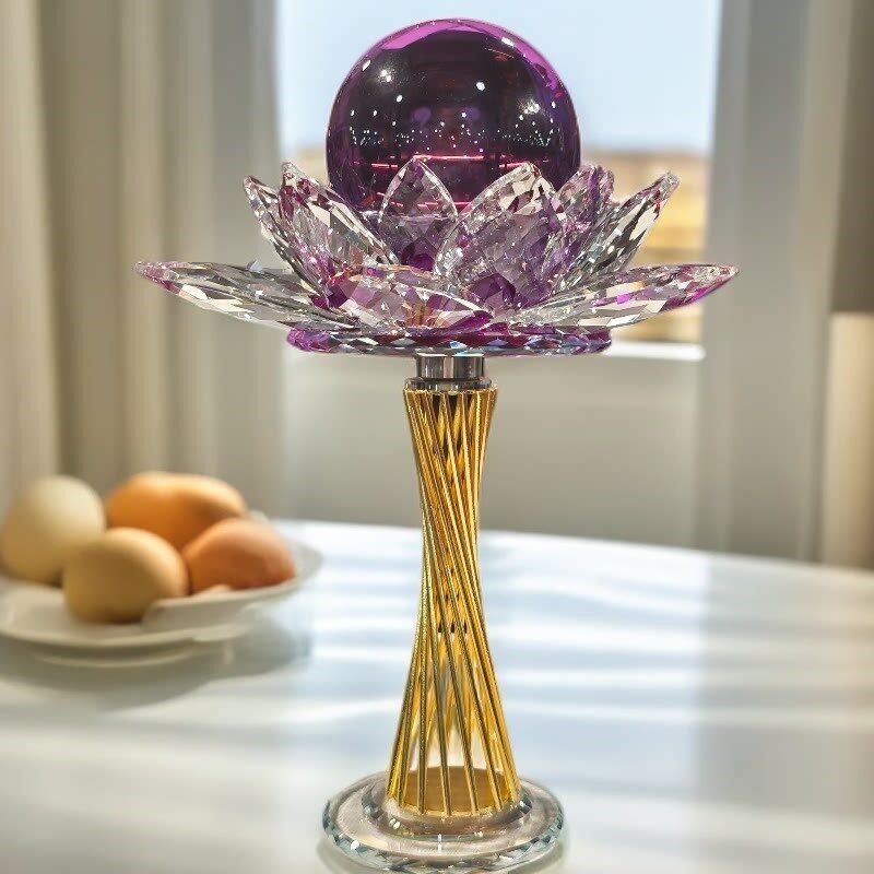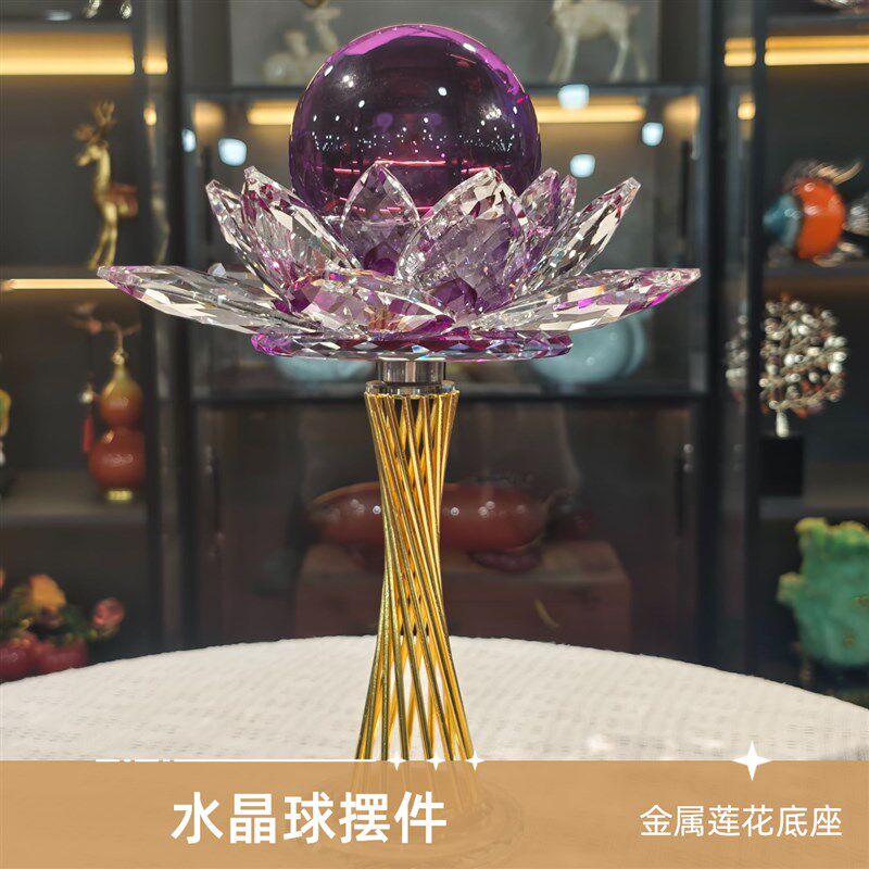 S高脚金属莲花底座紫色水晶球摆件装饰摆件