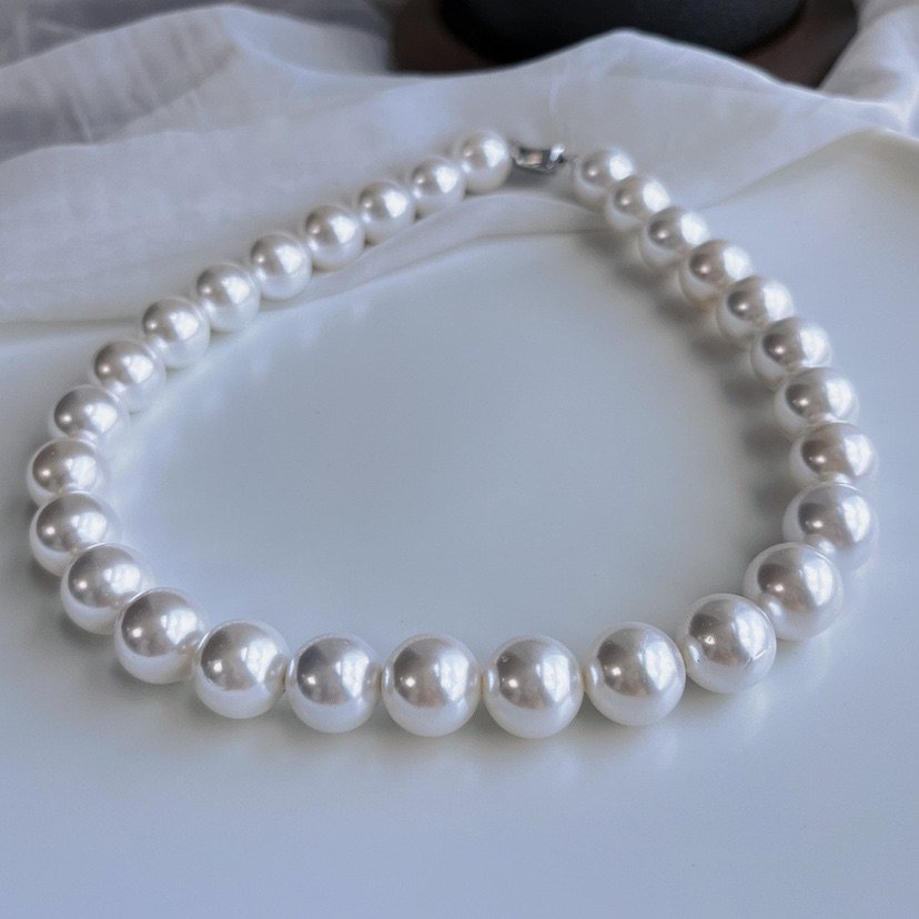 14mm白色人造珍珠项链手链套装简约时尚百搭气质韩版