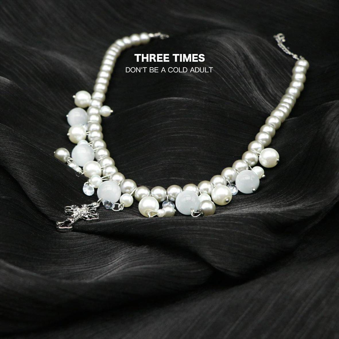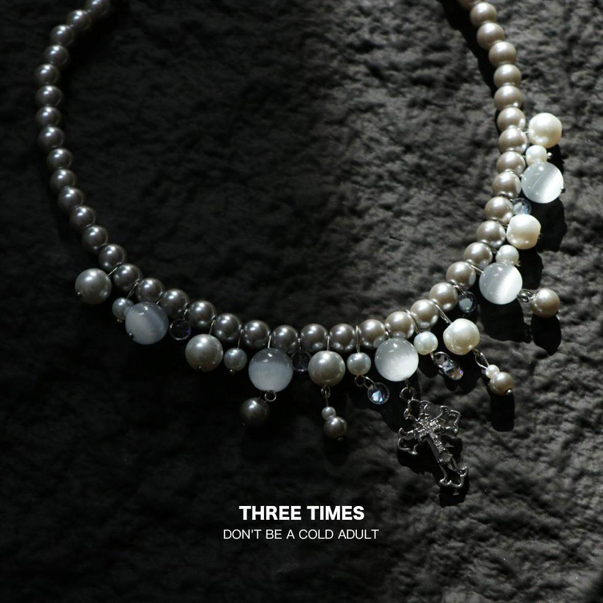 【THREE TIMES】灰色串珠十字架项链高级感冷淡小众设计欧美重工