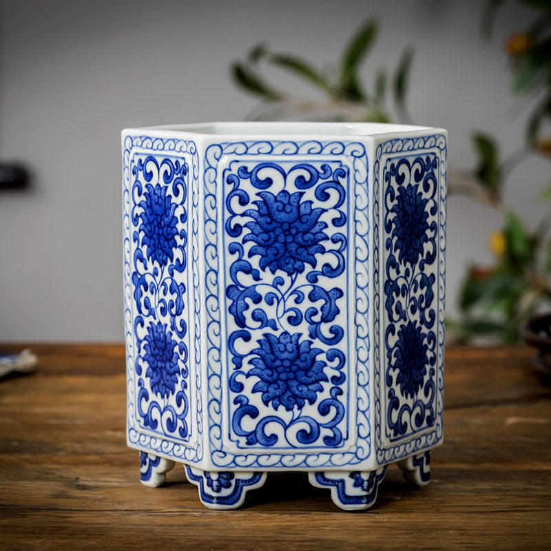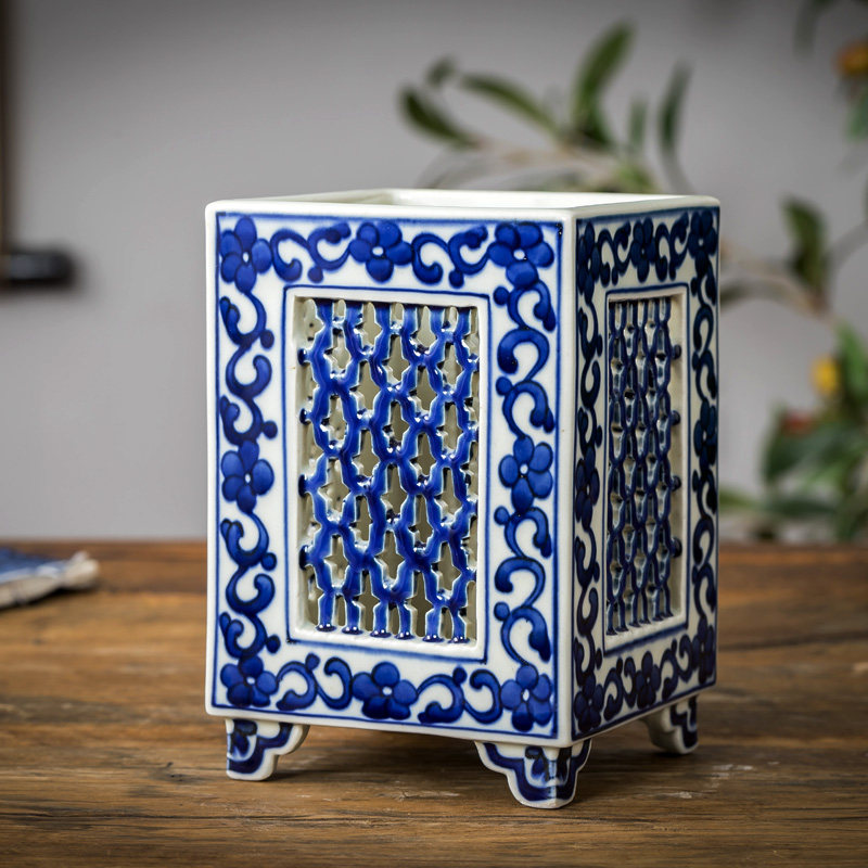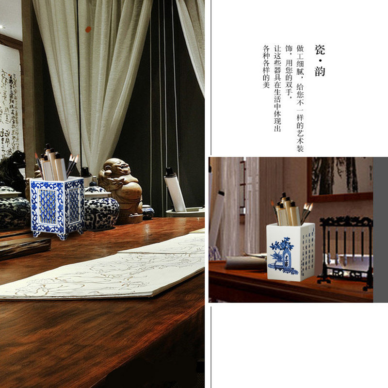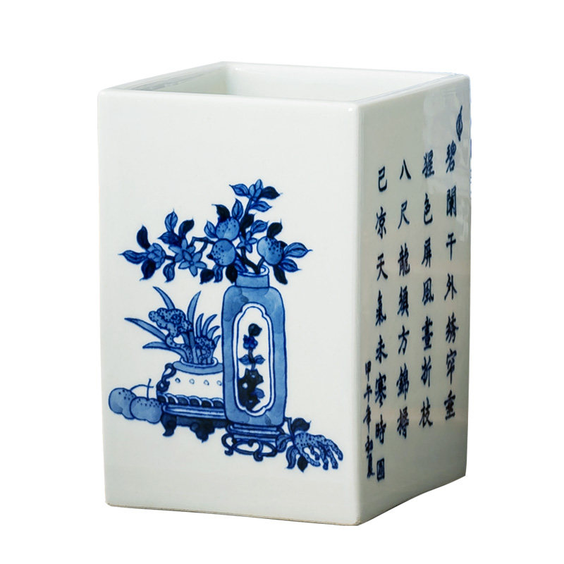 送老师景德镇陶瓷毛笔钢笔笔筒仿古瓷大清乾隆年制青花瓷手绘方形