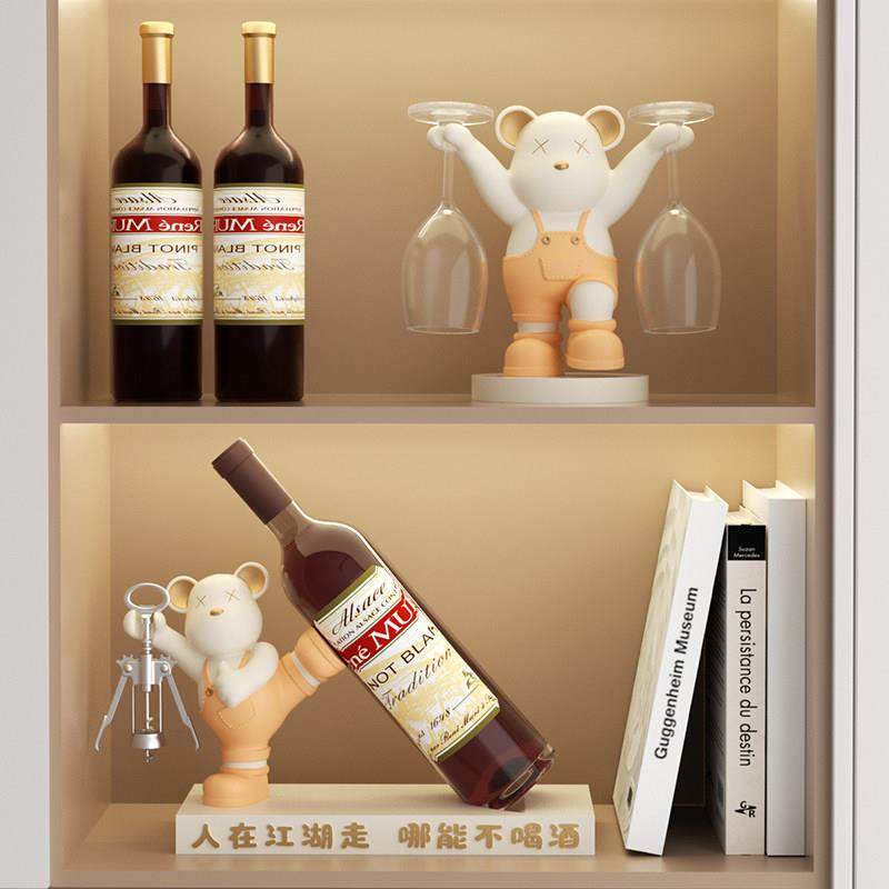 创意可爱红酒杯架摆件高档轻奢客厅酒柜暴力熊红酒架餐边柜装饰品