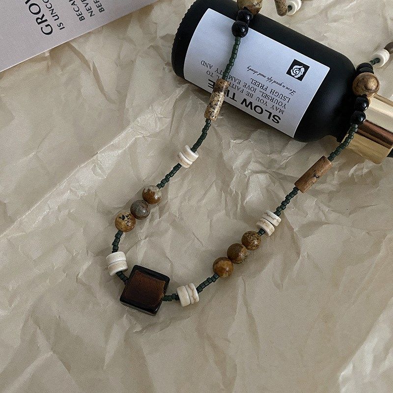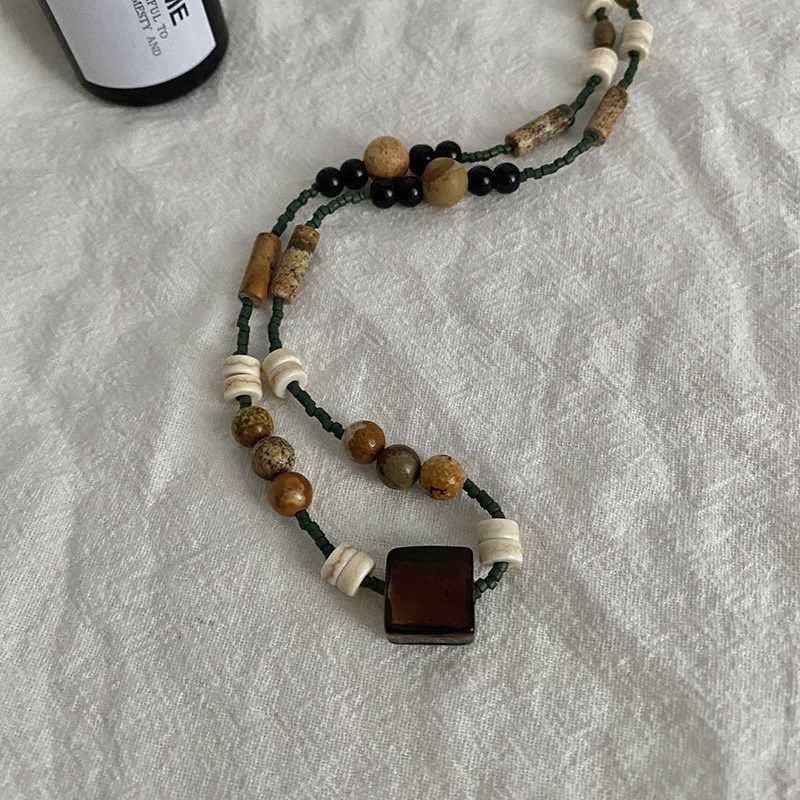 新中式复古方糖串珠项链女简约小众设计轻奢高级感锁骨链国潮项饰
