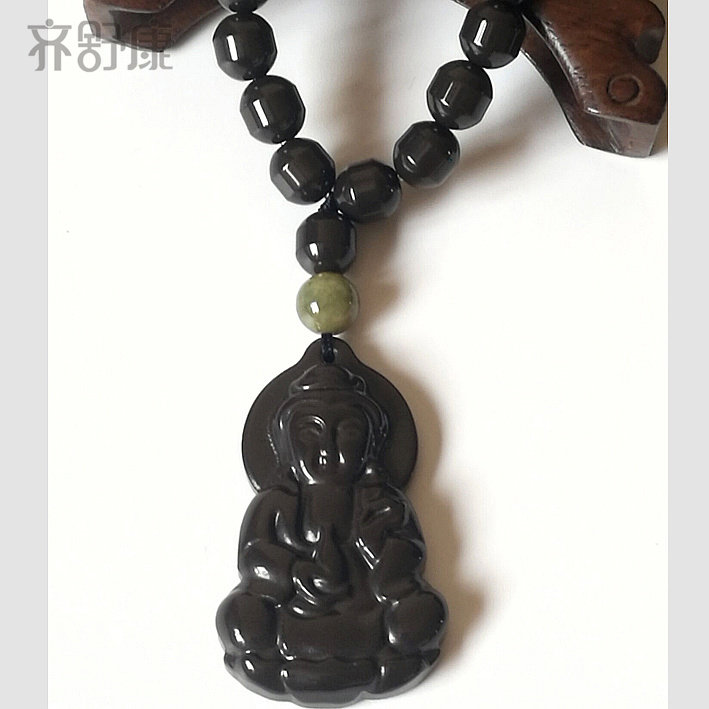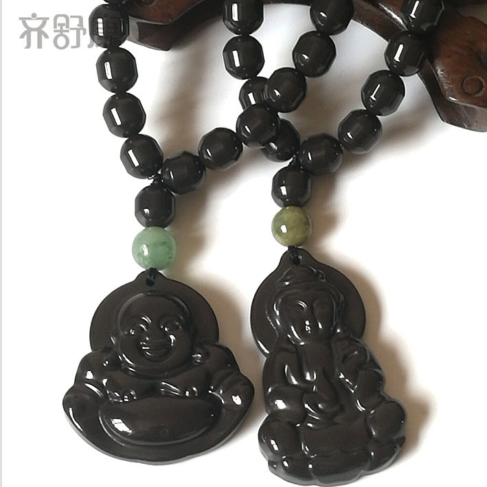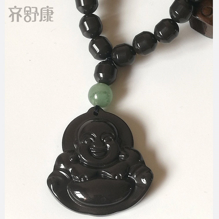 托玛琳项链 超亮锗石电气石地球园项链 观音 笑佛黑碧玺项链