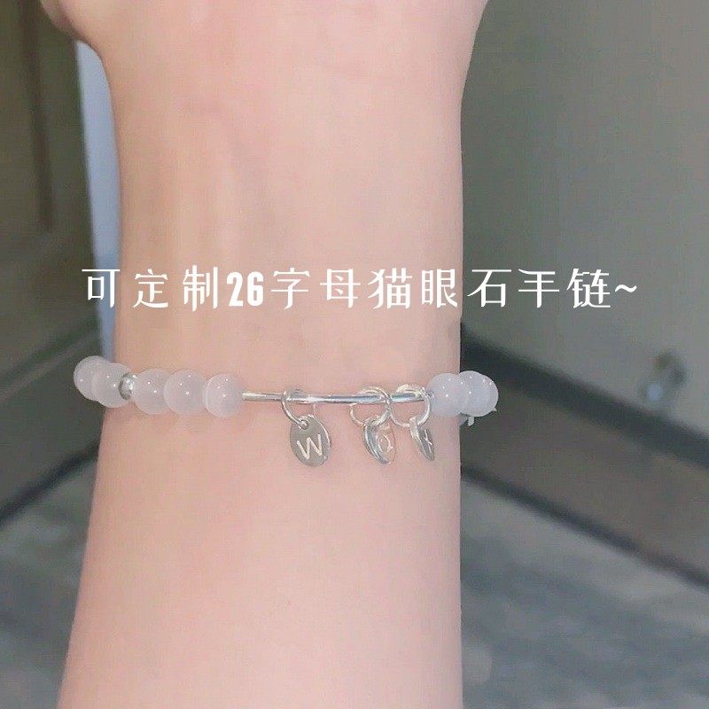 极速情侣手链定制刻字水晶手链ins学H生女猫眼石手串 定制手链刻