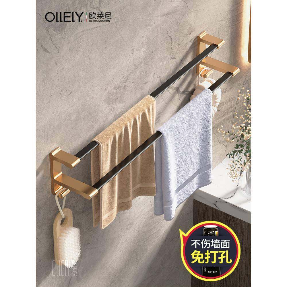 毛巾架免打孔卫生间浴室毛巾挂架壁挂式轻奢风洗手间挂杆网红厕所
