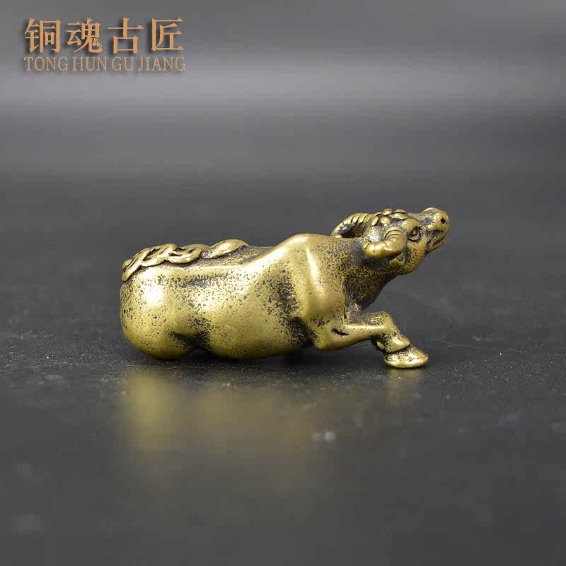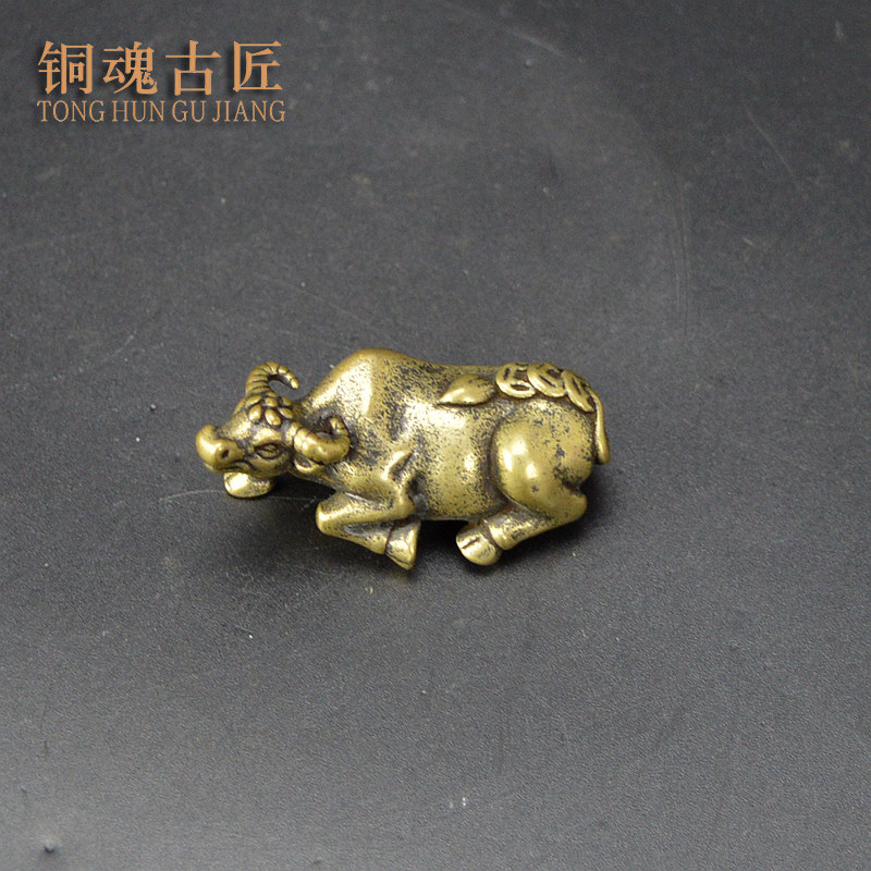 黄铜茶宠小摆件金钱牛工艺品实心铜钱牛气冲天生肖牛复古铜雕把件