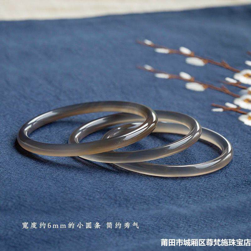 2026马料天然高冰透烟灰色玉髓手镯少女款天然巴西烟灰色玛瑙镯子