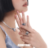 SUMIYAKI 立体碎钻渐变蝴蝶戒指绝美黑色蓝色小众ins个性开口戒