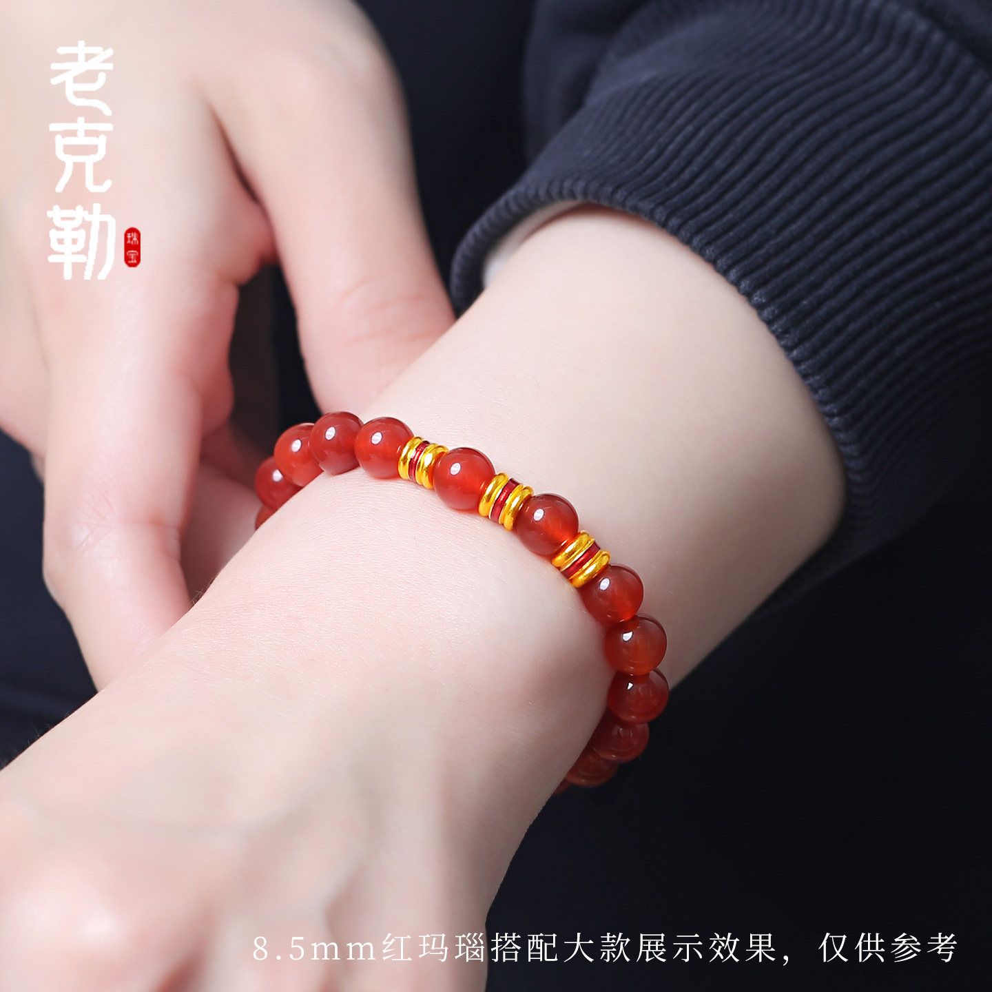 老克勒古法黄金红色桶珠足金999小配件手串DIY配饰手链送礼女