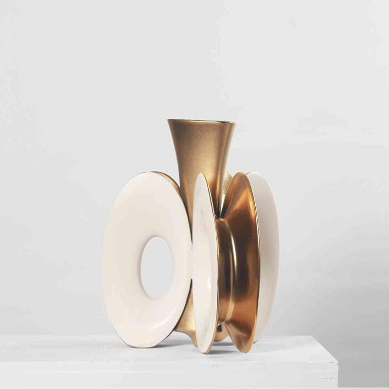 现代简约金黄色亮面陶瓷桌面装饰摆件酒店大堂民宿样板间摆设