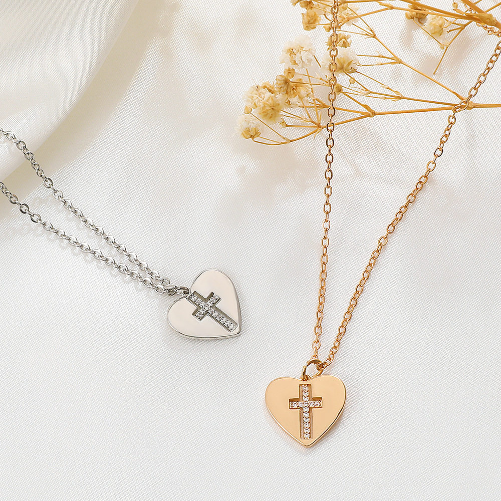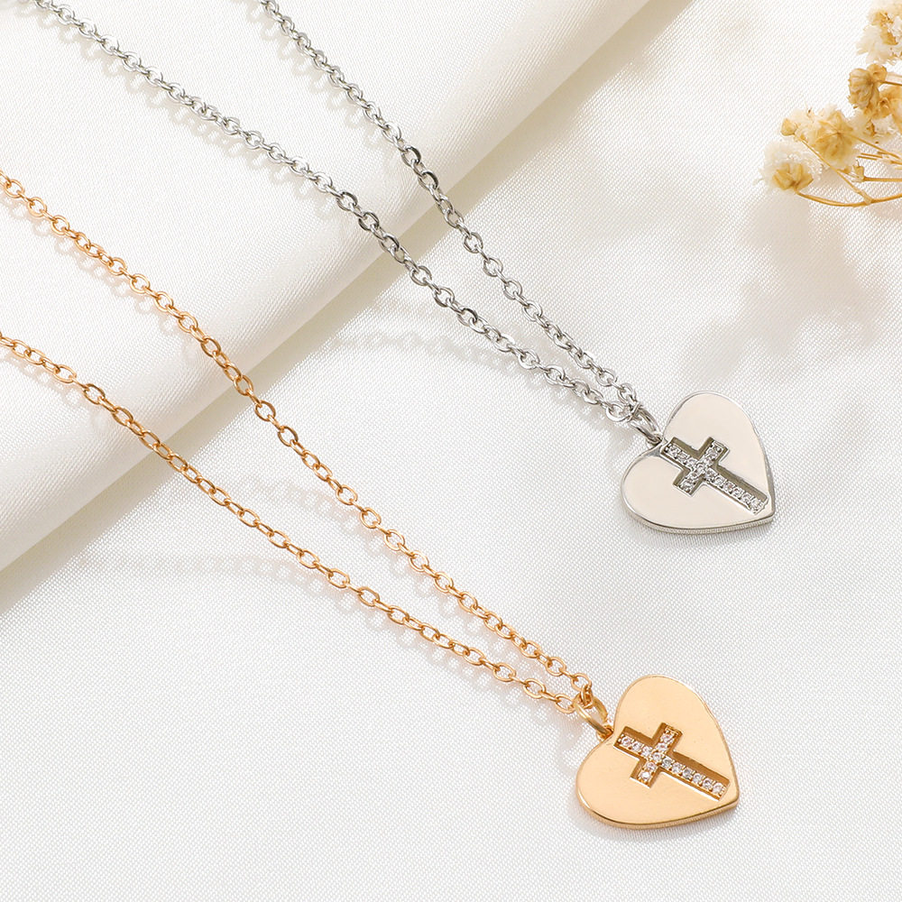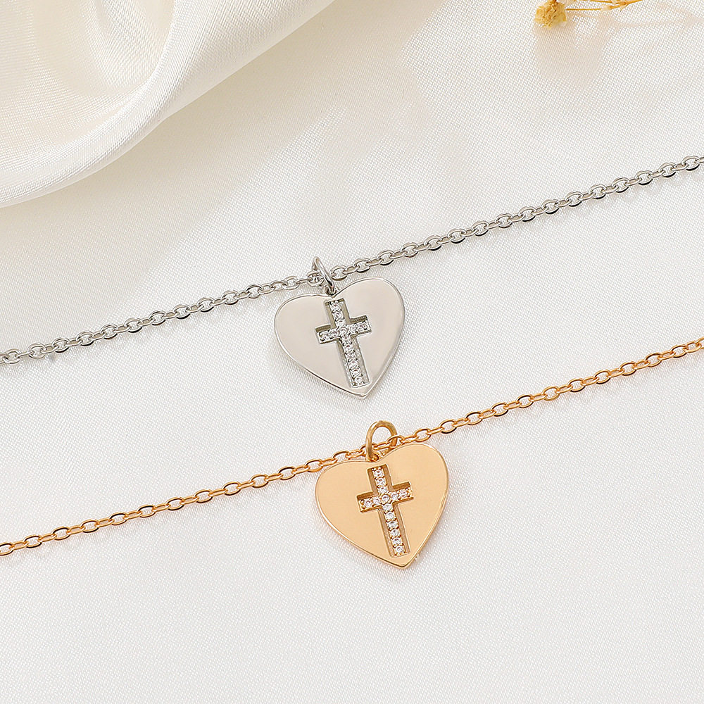 Love cross necklace 爱心十字架项链复古设计小众镶钻心形锁骨链