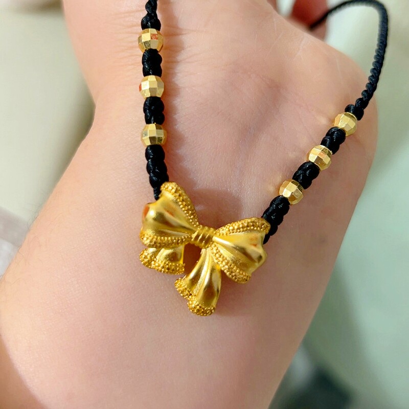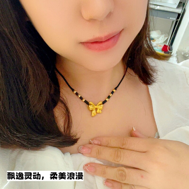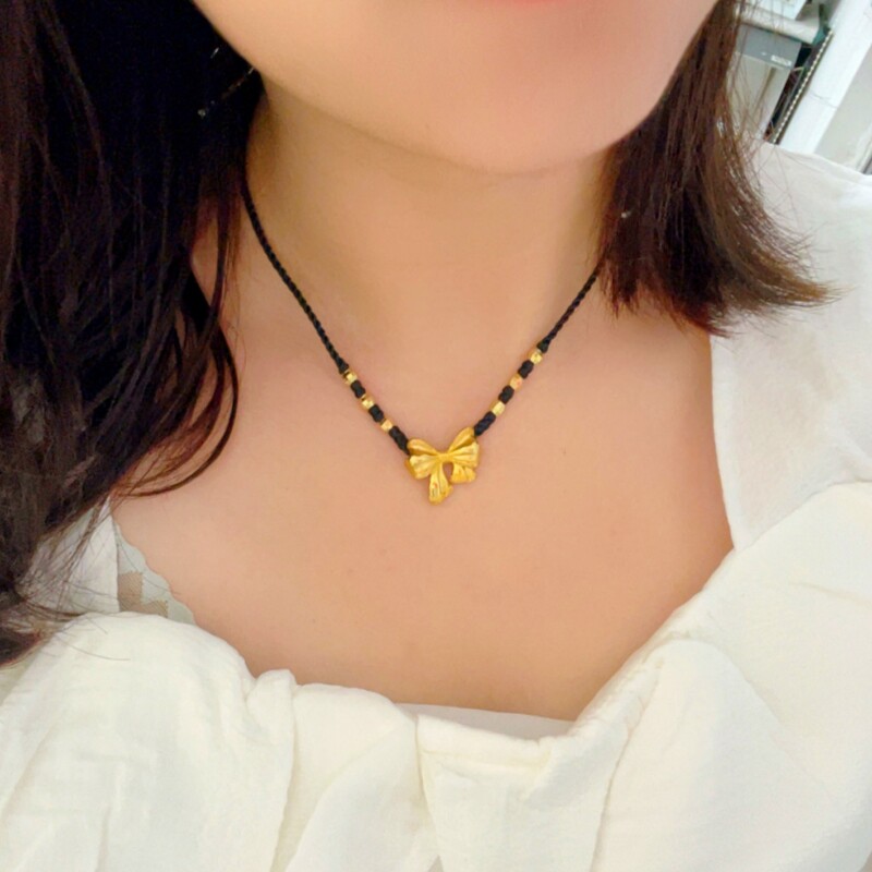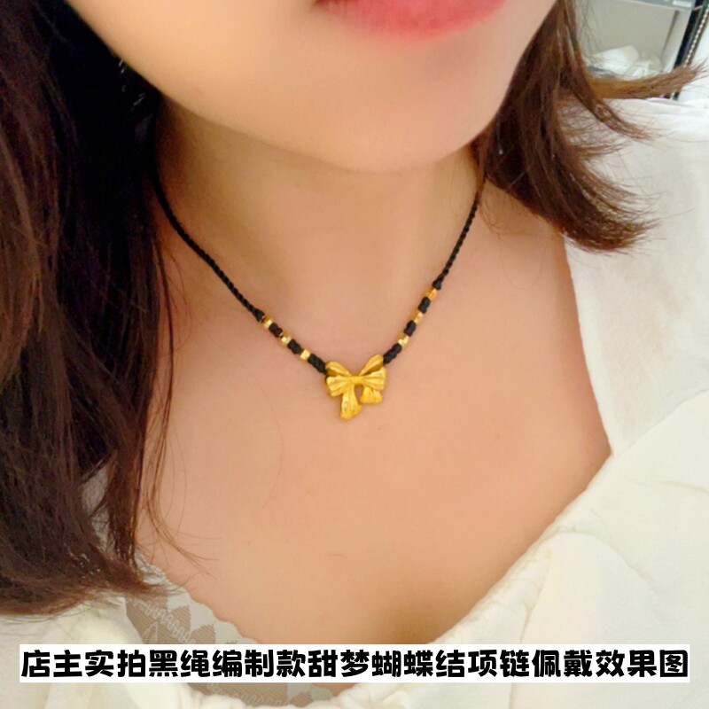 个性黑绳在逃公主蝴蝶结吊坠项链越南沙金镀金精致项链久不掉色