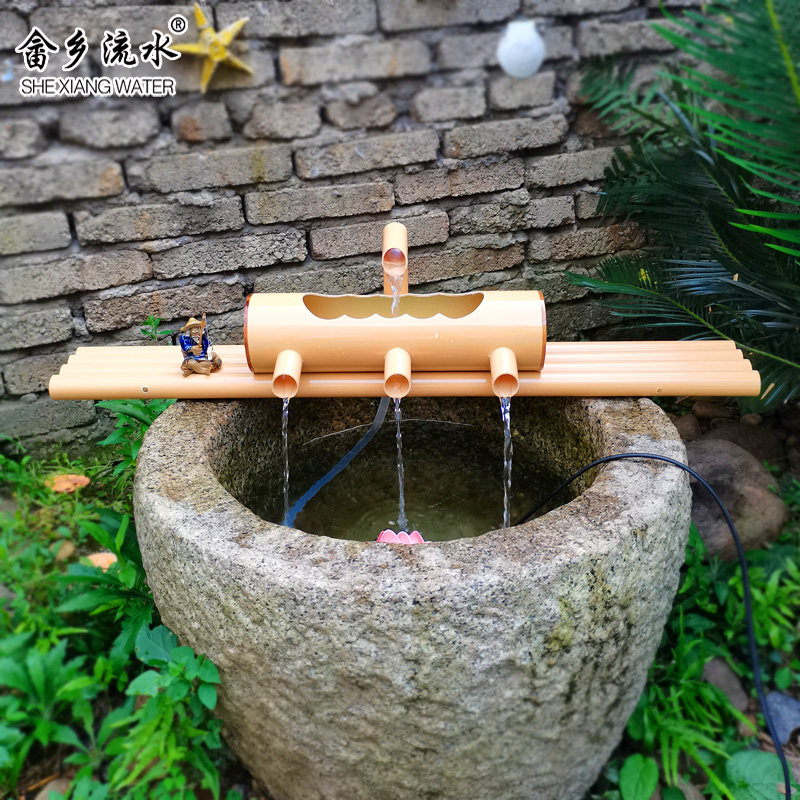 鱼缸增氧过滤器循环流水招财摆件喷泉石槽PVC塑料竹筒竹子流水器
