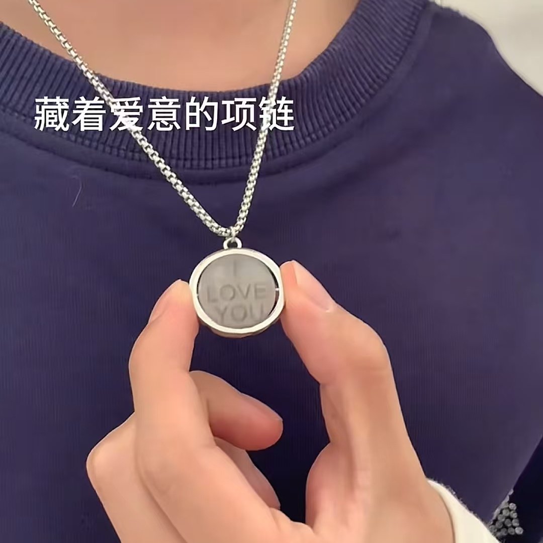 毕业礼物表白惊喜我爱你学生项链i旋转love520圆盘戒指you情侣