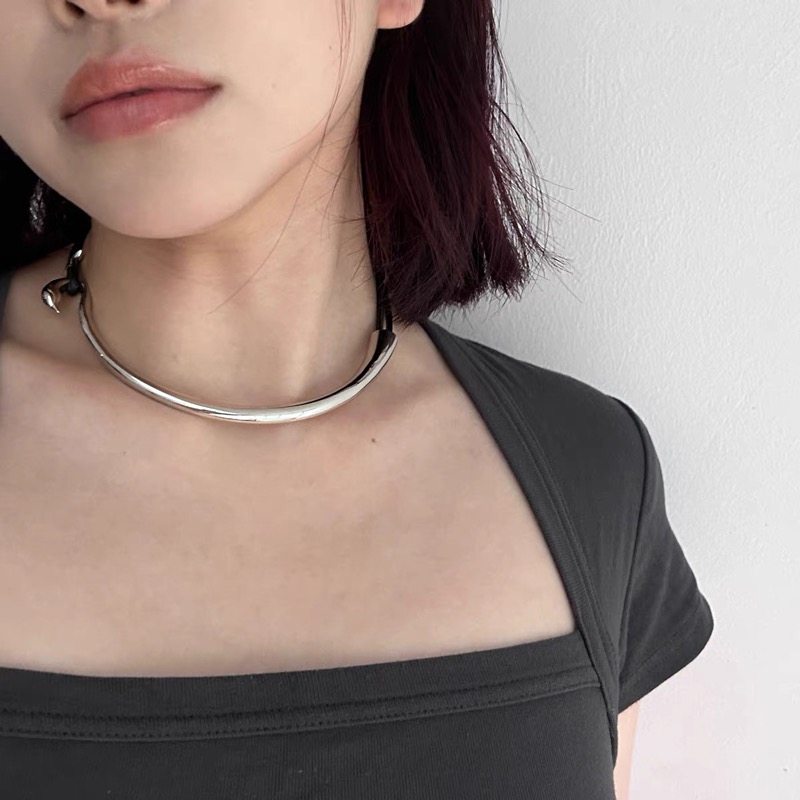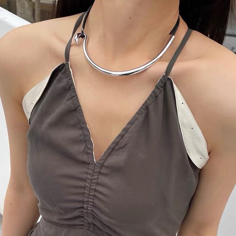 Céleste 飞鸟黑色皮绳拼接项圈女小众设计冷淡风高级轻奢锁骨链