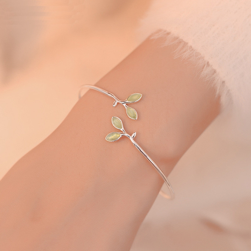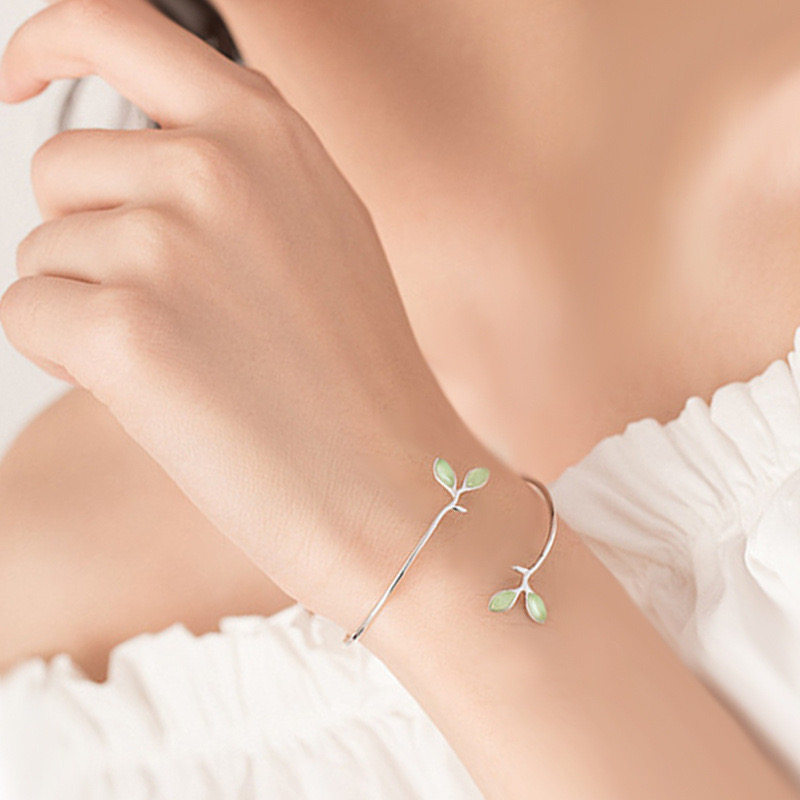 森系文艺清新绿色嫩芽手镯轻奢小众精致简约气质树叶手饰夏季新款