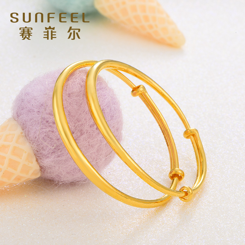 赛菲尔黄金儿童手镯足金蛇肚光圈素圈小孩宝宝镯婴儿新年送宝宝镯