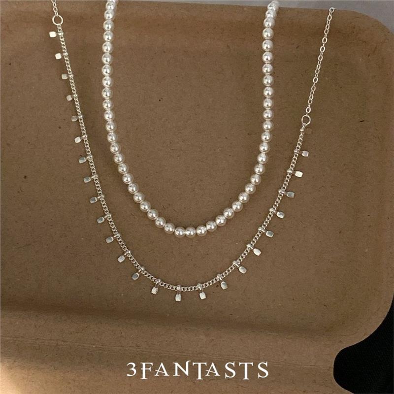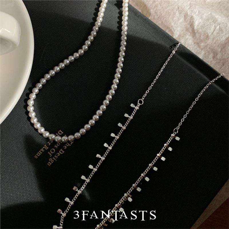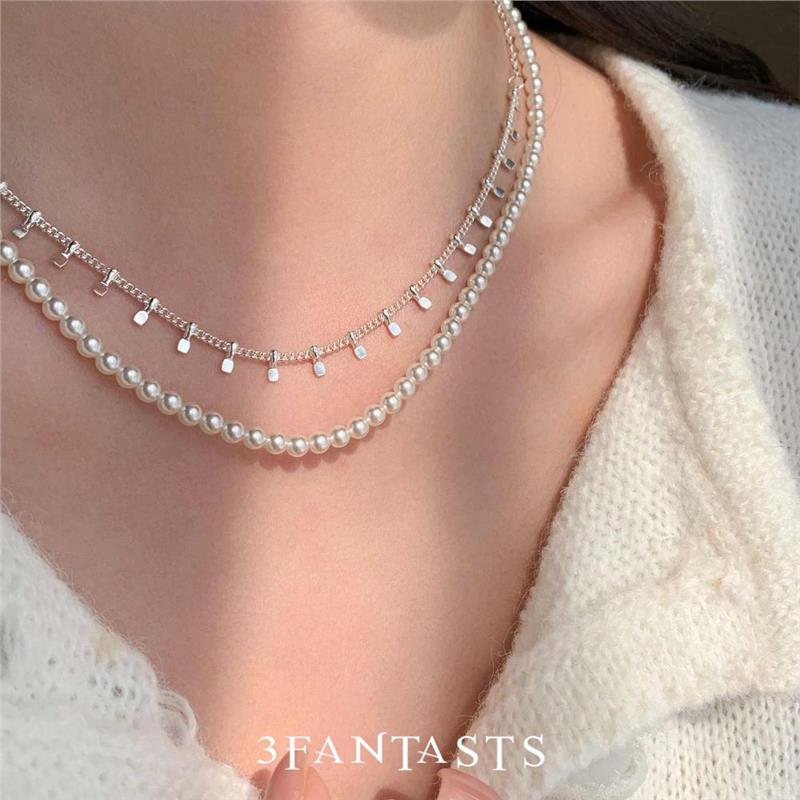 3FANTASTS白色浪漫项链女轻奢小众高级感双层叠戴锁骨链设计配饰