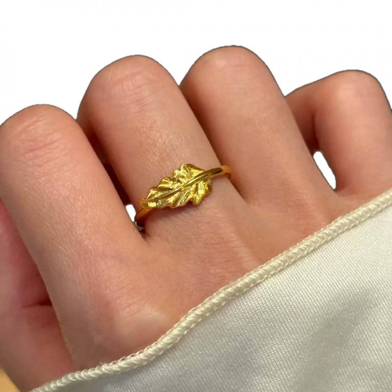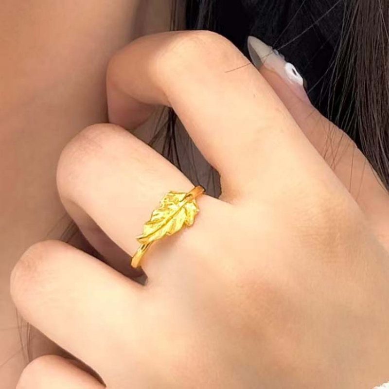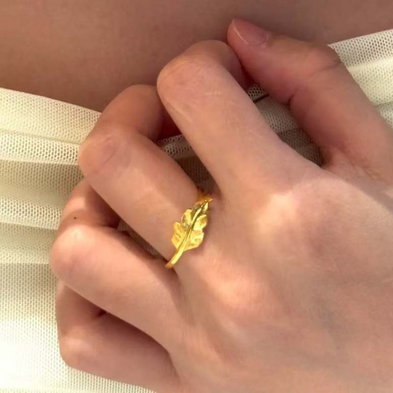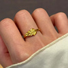 新款古法黄色开口树叶戒指女个性时尚气质指环首饰