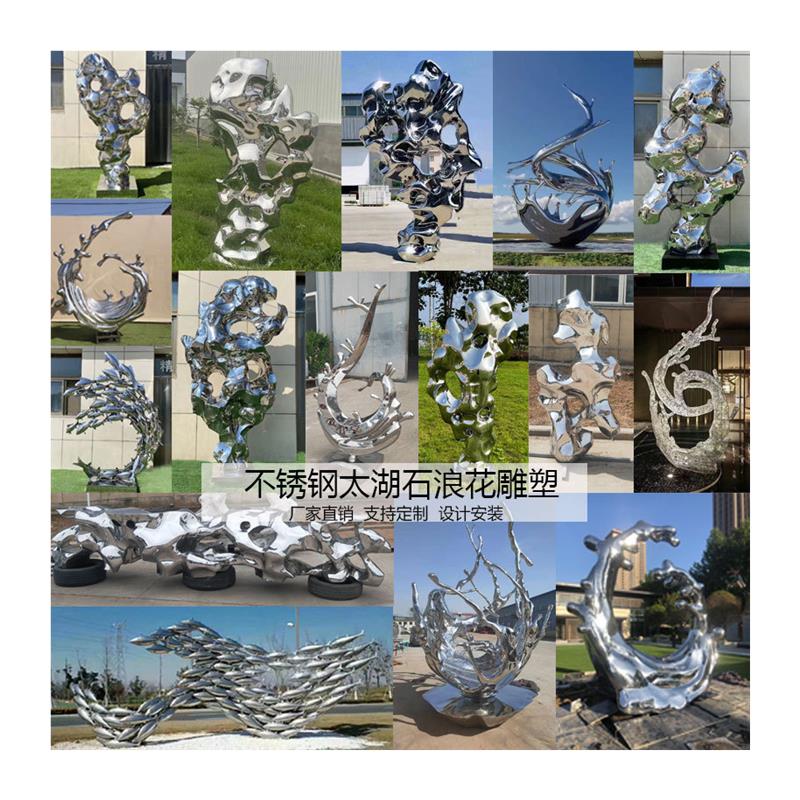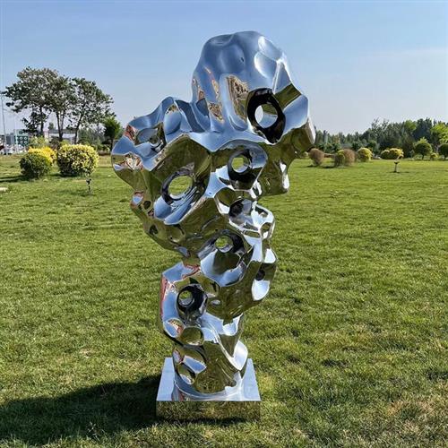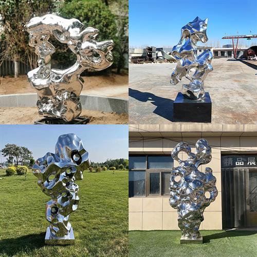 不锈钢太湖石雕塑不锈钢假山摆件抽象户外庭院售楼处造景水景石头