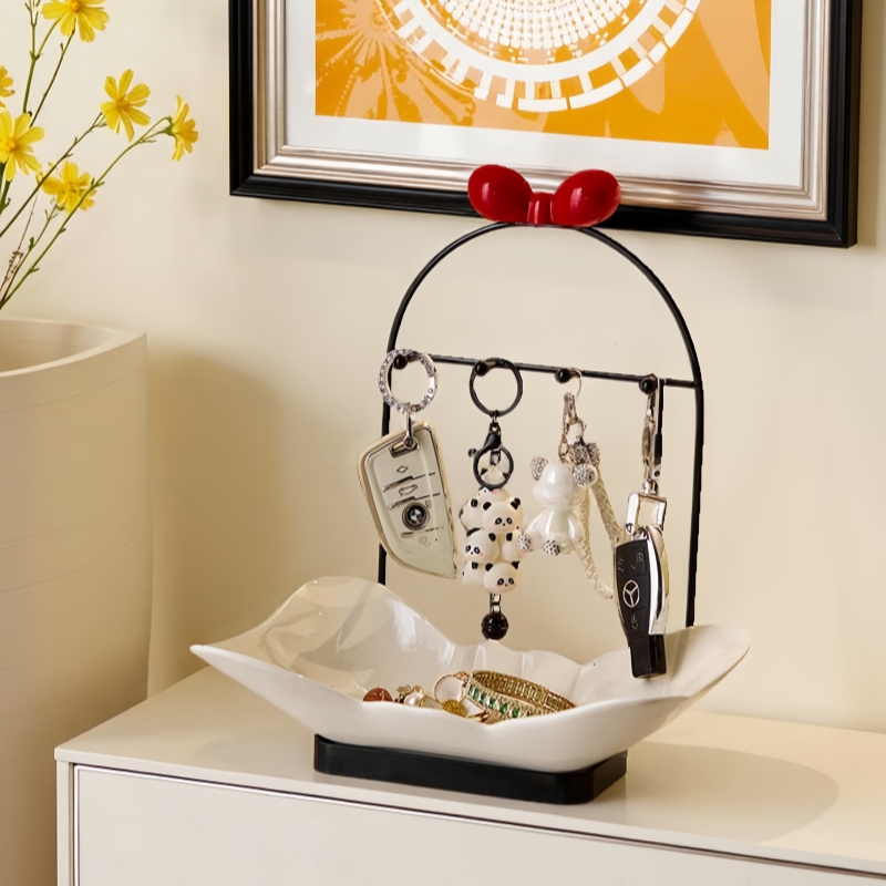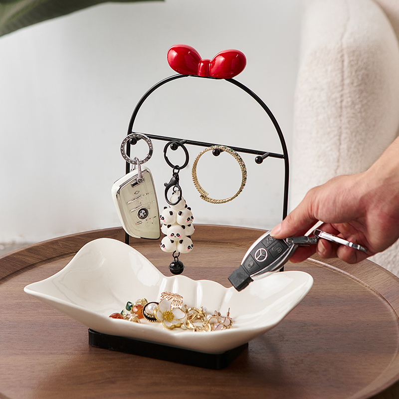 奶油风可爱鞋柜入户玄关挂钥匙收纳盒摆件客厅桌面装饰托盘置物架