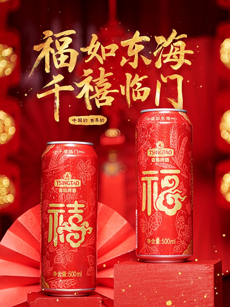 青岛啤酒经典延续喜庆罐体福禧罐500ml*12听整箱包邮