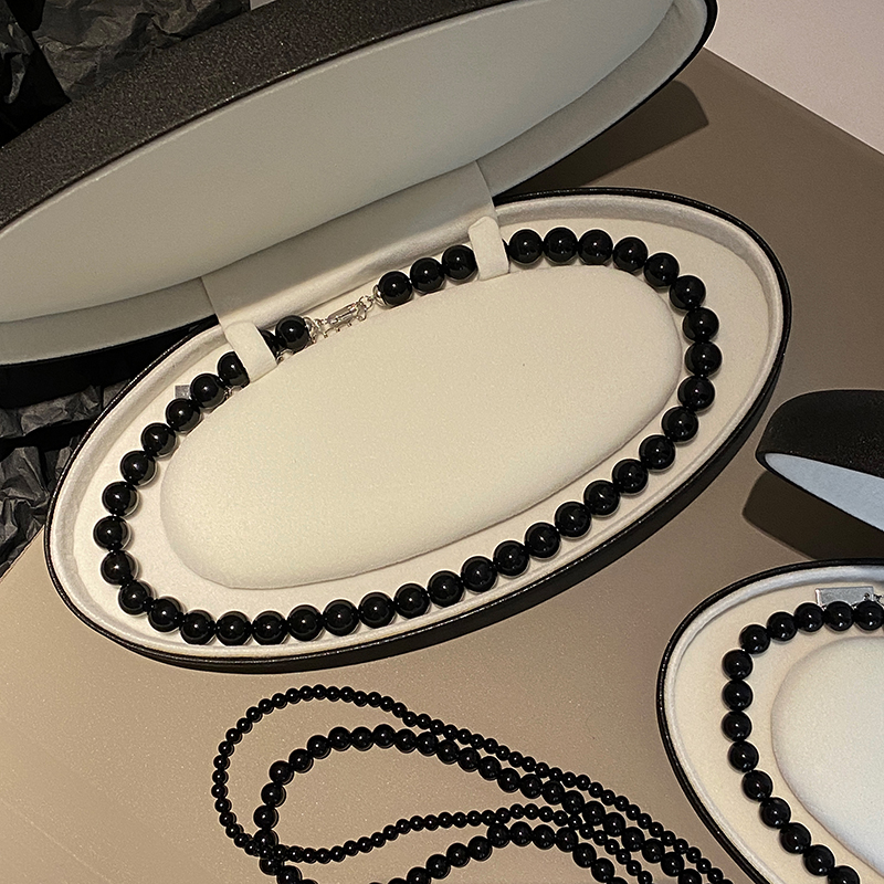 长款黑玛瑙色串珍珠项链配饰女夏叠戴2025新款高级感轻奢锁骨颈链