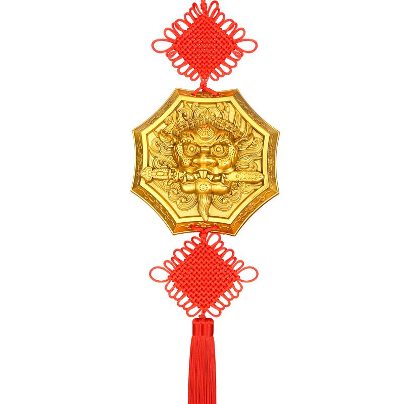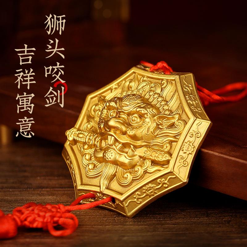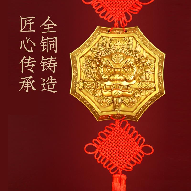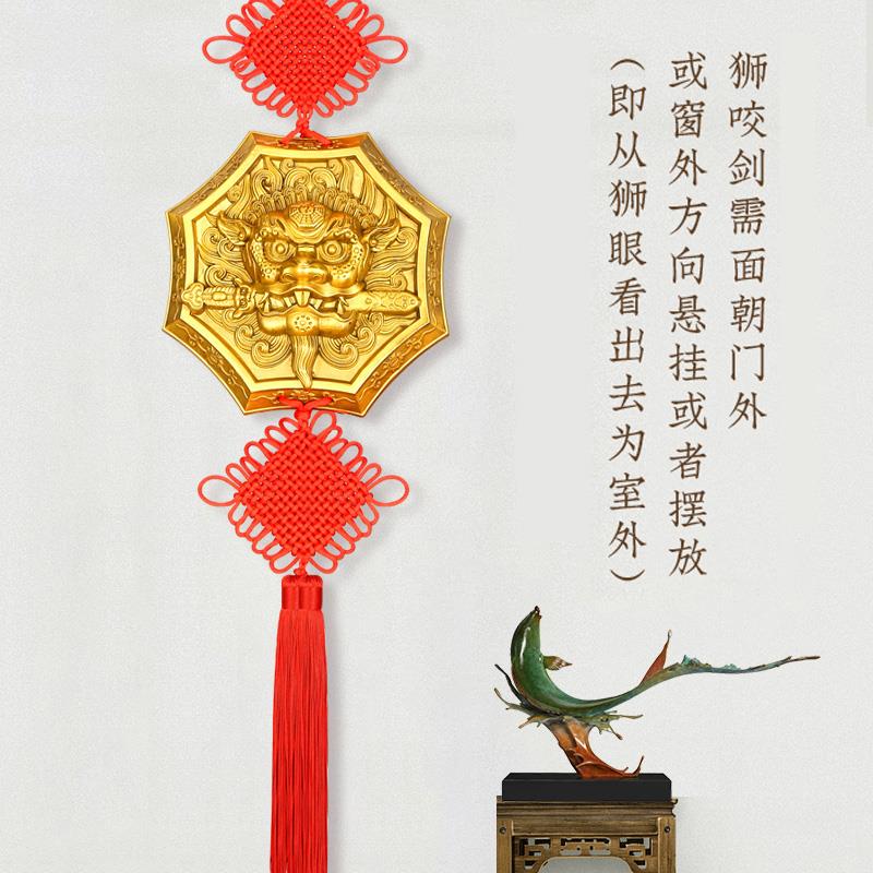 铜制狮咬剑挂件摆件睚眦门头铜狮子咬剑八卦镜虎头牌兽头吞口兽