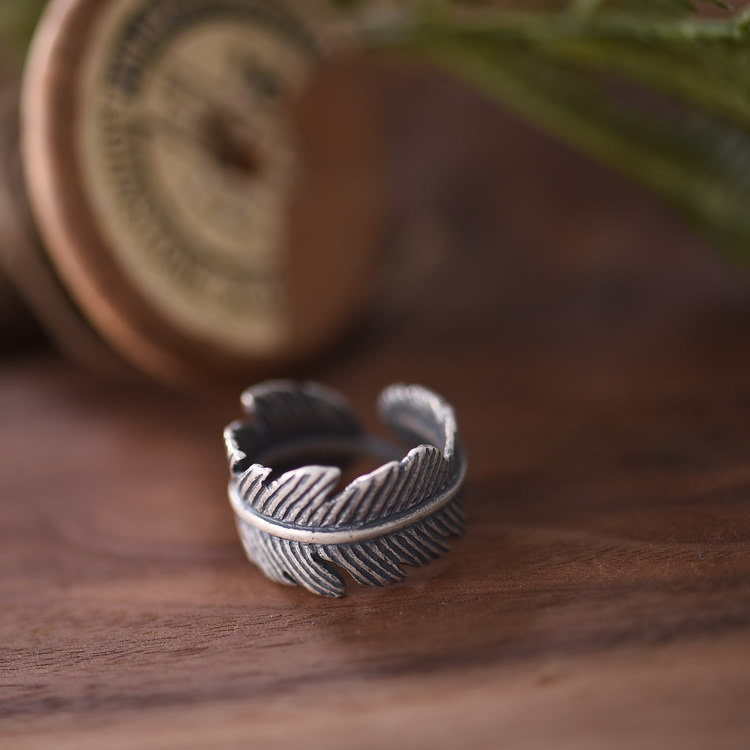 Dark Dream 925纯银另类羽毛戒指女生几何个性树叶潮流男孩配饰品