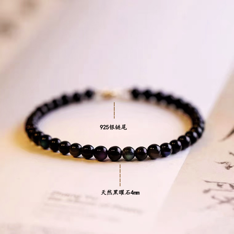 原创天然黑曜石脚链女2025新款小众设计简约足链夏个性925银礼物