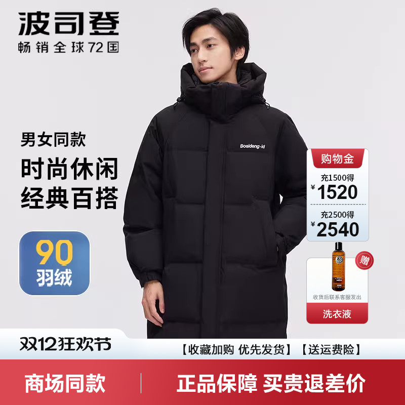 波司登新品男女同款羽绒服连帽时尚花版情侣款冬羽绒服中长款