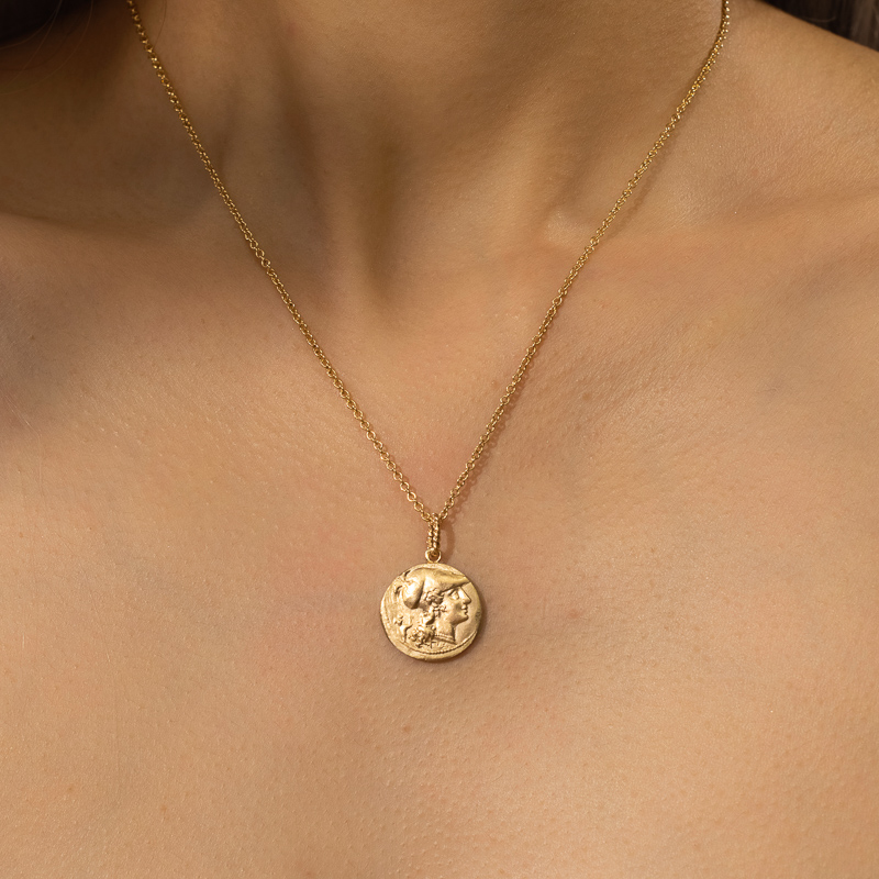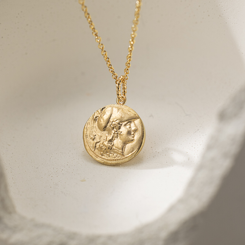 【古法打制币】希腊雅典娜胜利女神 14K包金币项链女复古硬币吊坠