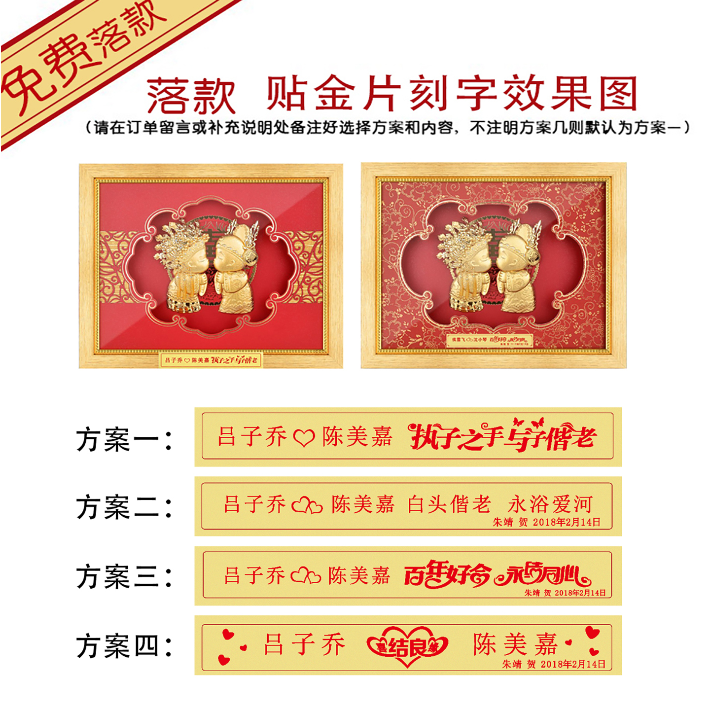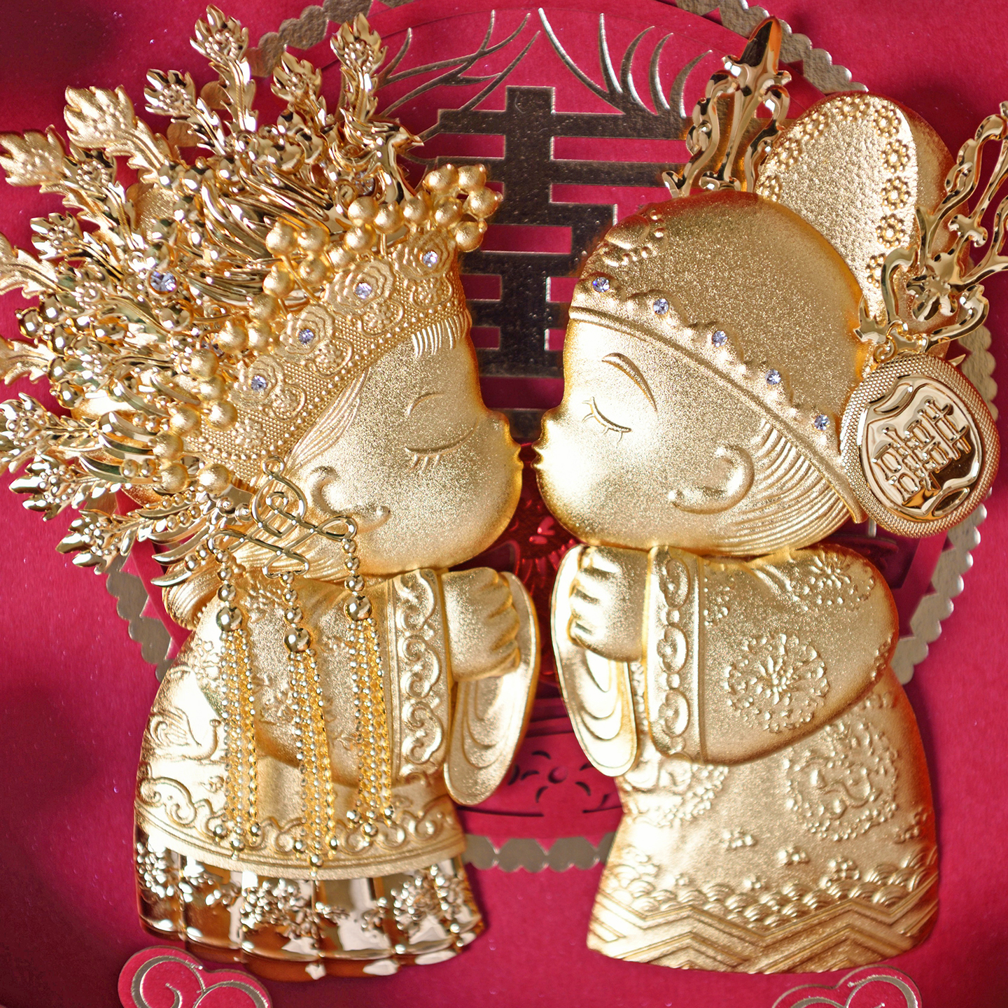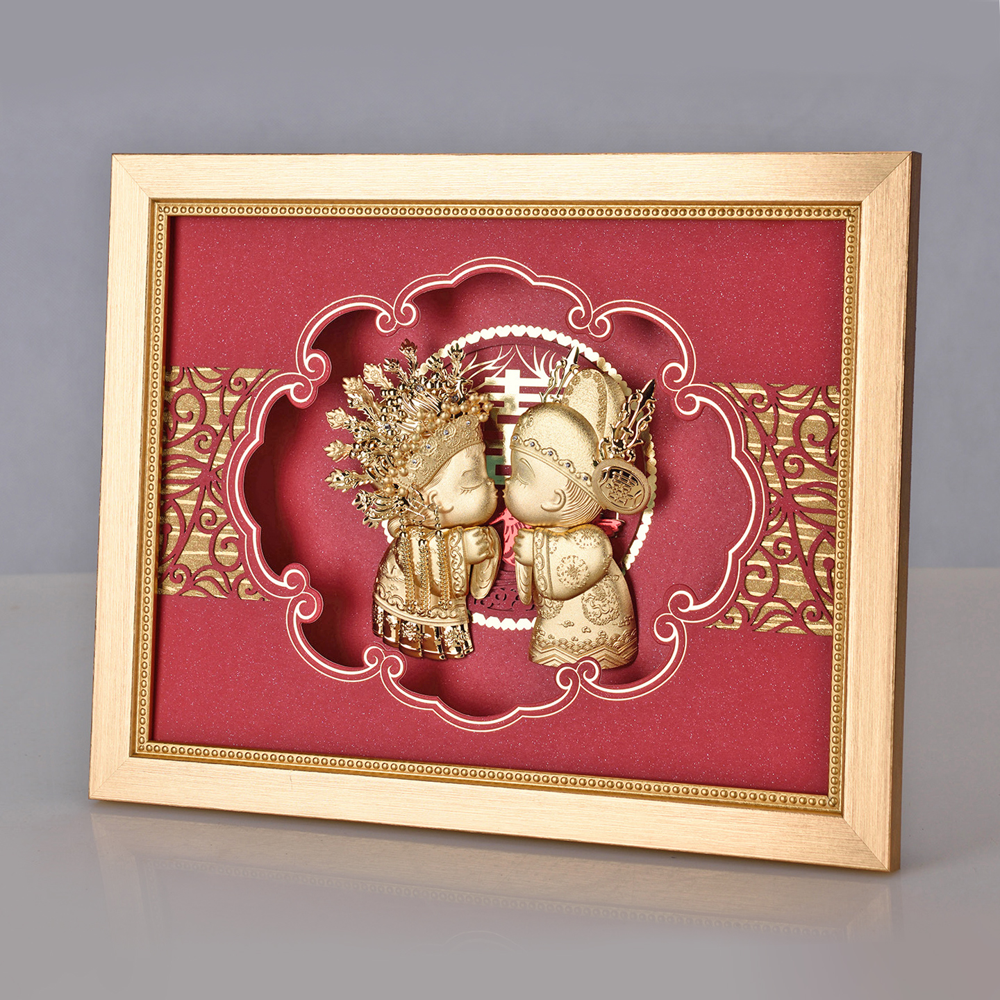 金箔画结婚娃娃婚庆金石良缘创意实用摆件新婚礼物送新人闺蜜朋友