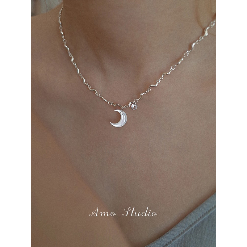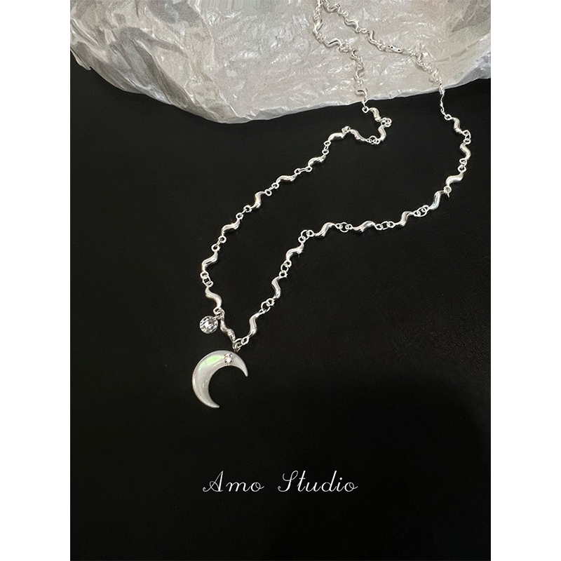AMO冷月光天然贝母月亮项链女纯银高级感ins小众设计温柔锁骨链