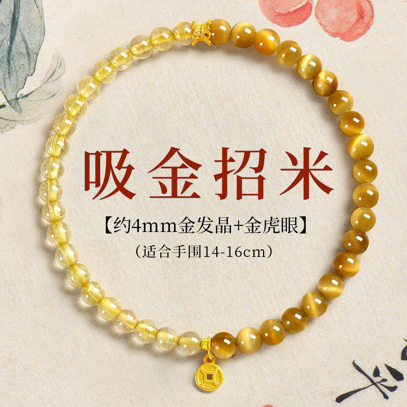 普陀山金发晶手串女招财转运珠黄水晶手链黄色旺财运金虎