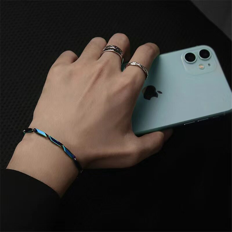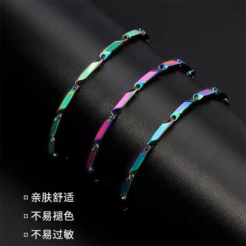 潮流男士钛钢手链淬火不掉色竹叶链男潮冷淡风男生小众手环饰品
