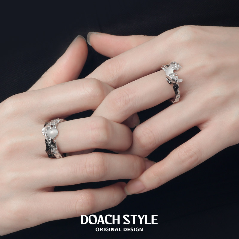 DOACH 日月星辰戒指纯银情侣对戒轻奢高级感月亮对戒可调节刻字