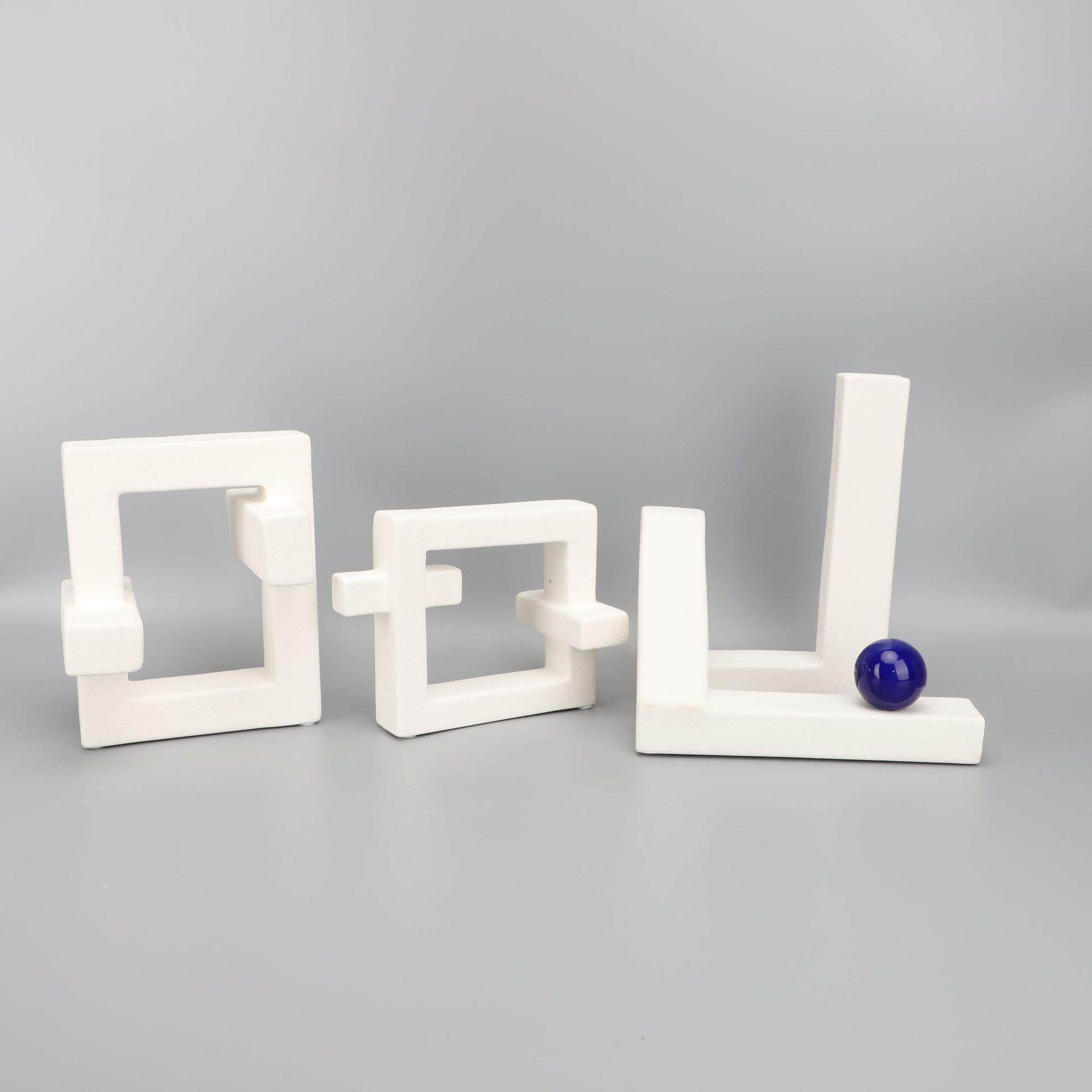 欧式创意几何树脂白色摆件样板房售楼部客厅玄关酒柜家居软装饰品