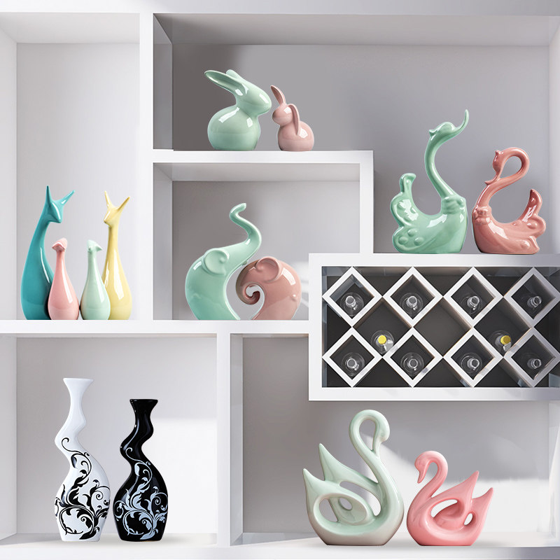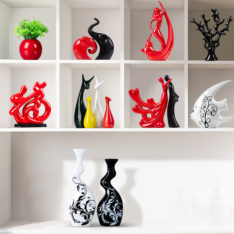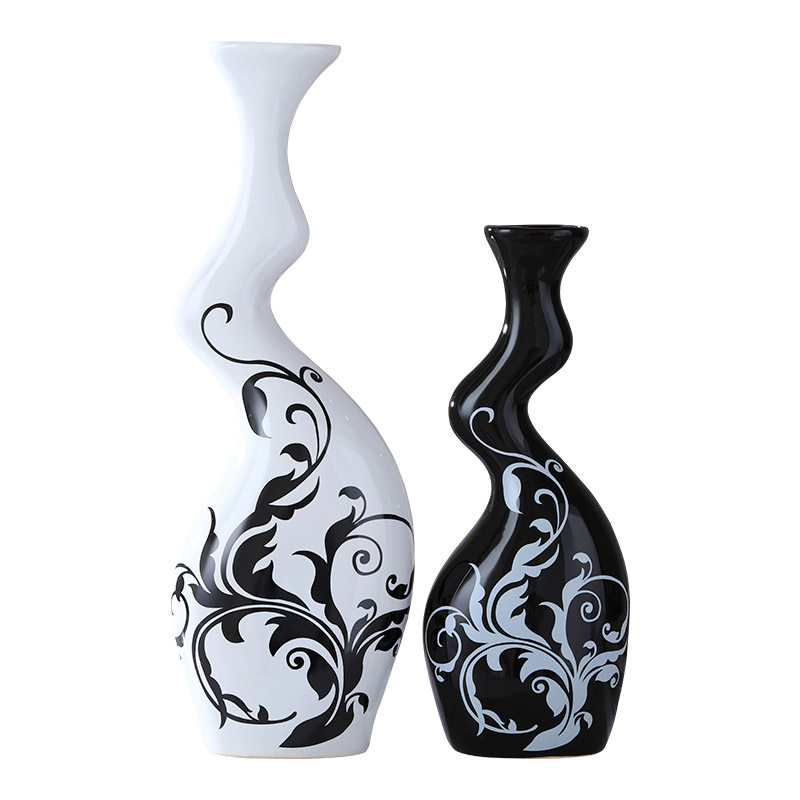 花瓶摆件家居创意装饰品现代简约客厅酒柜卧室玄关牛腿黑白色花瓶