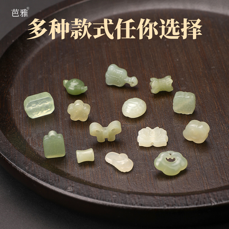 天然和田玉配件diy玉石手链吊坠莲花隔珠手串手机链挂件材料真品