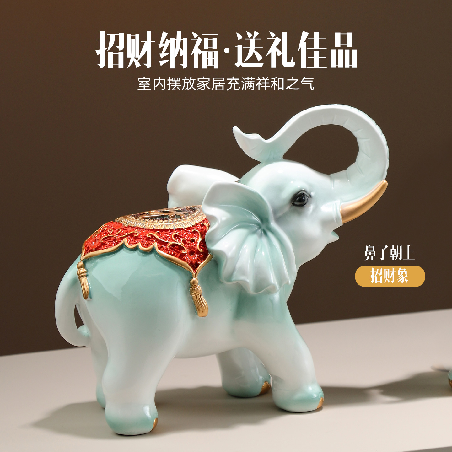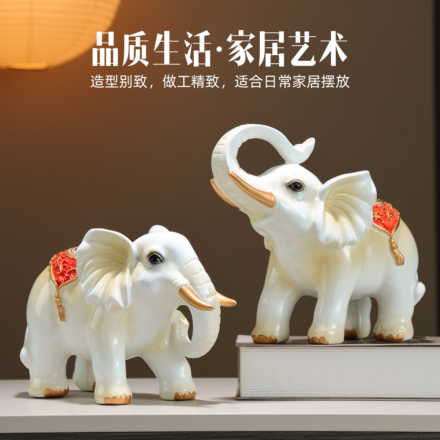 现代吉祥如意招财大象桌面摆件一对客厅电视柜装饰品乔迁新居礼品