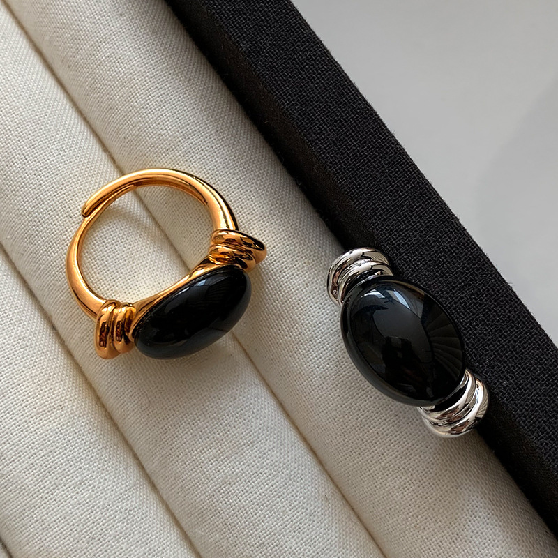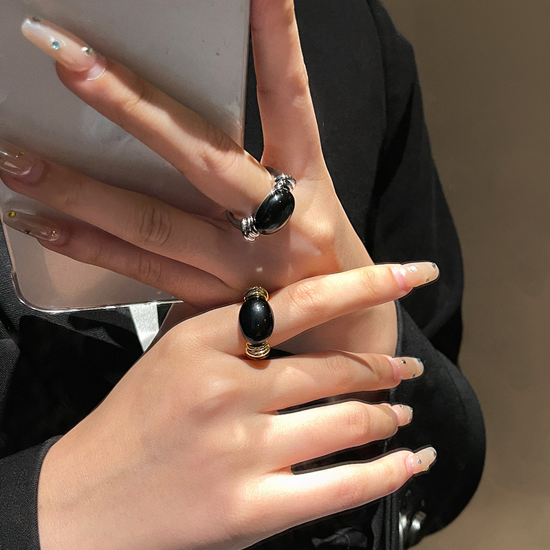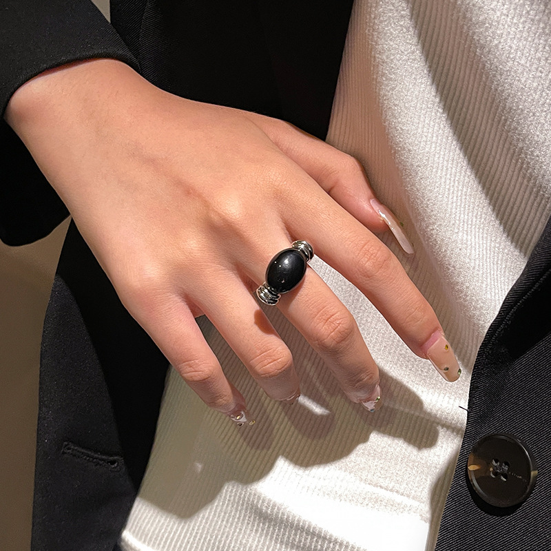 日本品质欧美黑色黑胆石开口戒指女高端轻奢小众设计高级感复古食