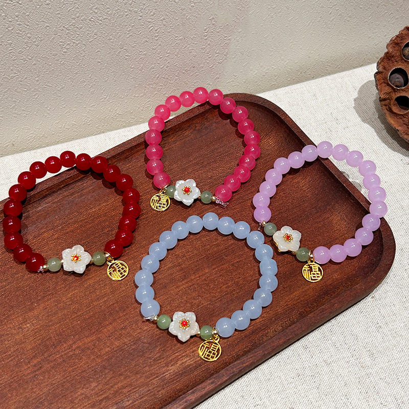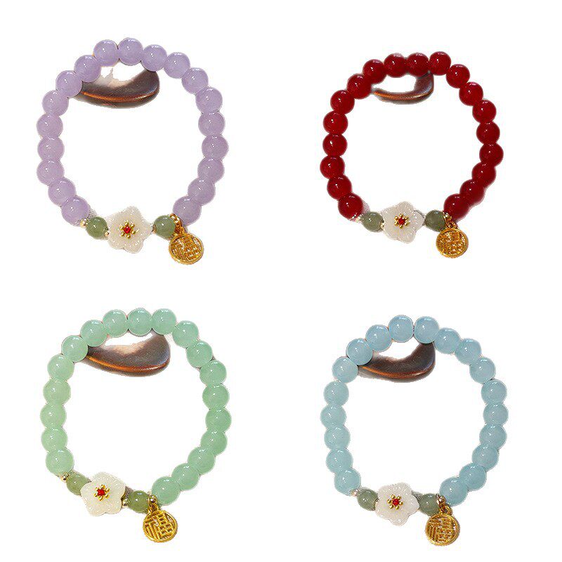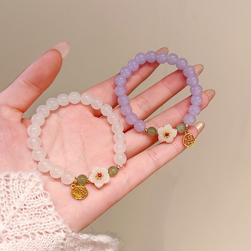 新中式琉璃串珠手链女孩玻璃珠手链甜美桃花水晶手串送闺蜜学生
