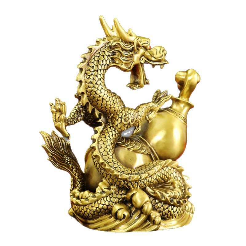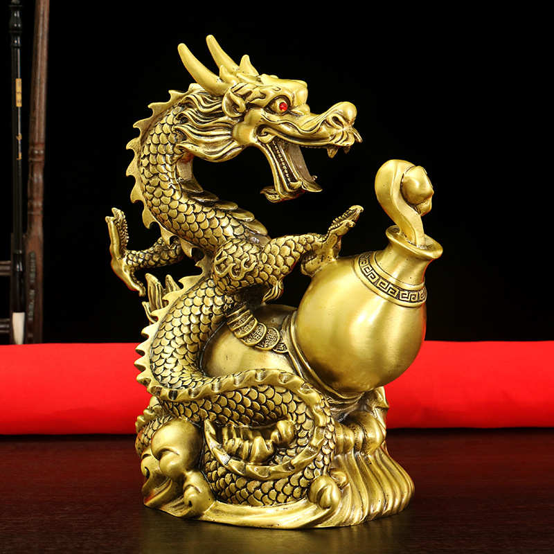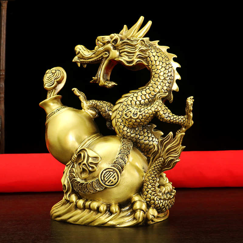 纯铜葫芦龙摆件福禄五爪金龙生肖龙客厅酒柜装饰月亮龙青龙铜水龙