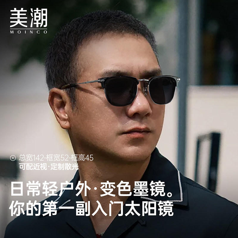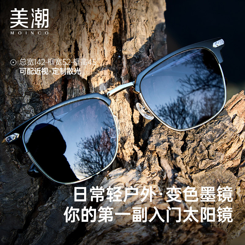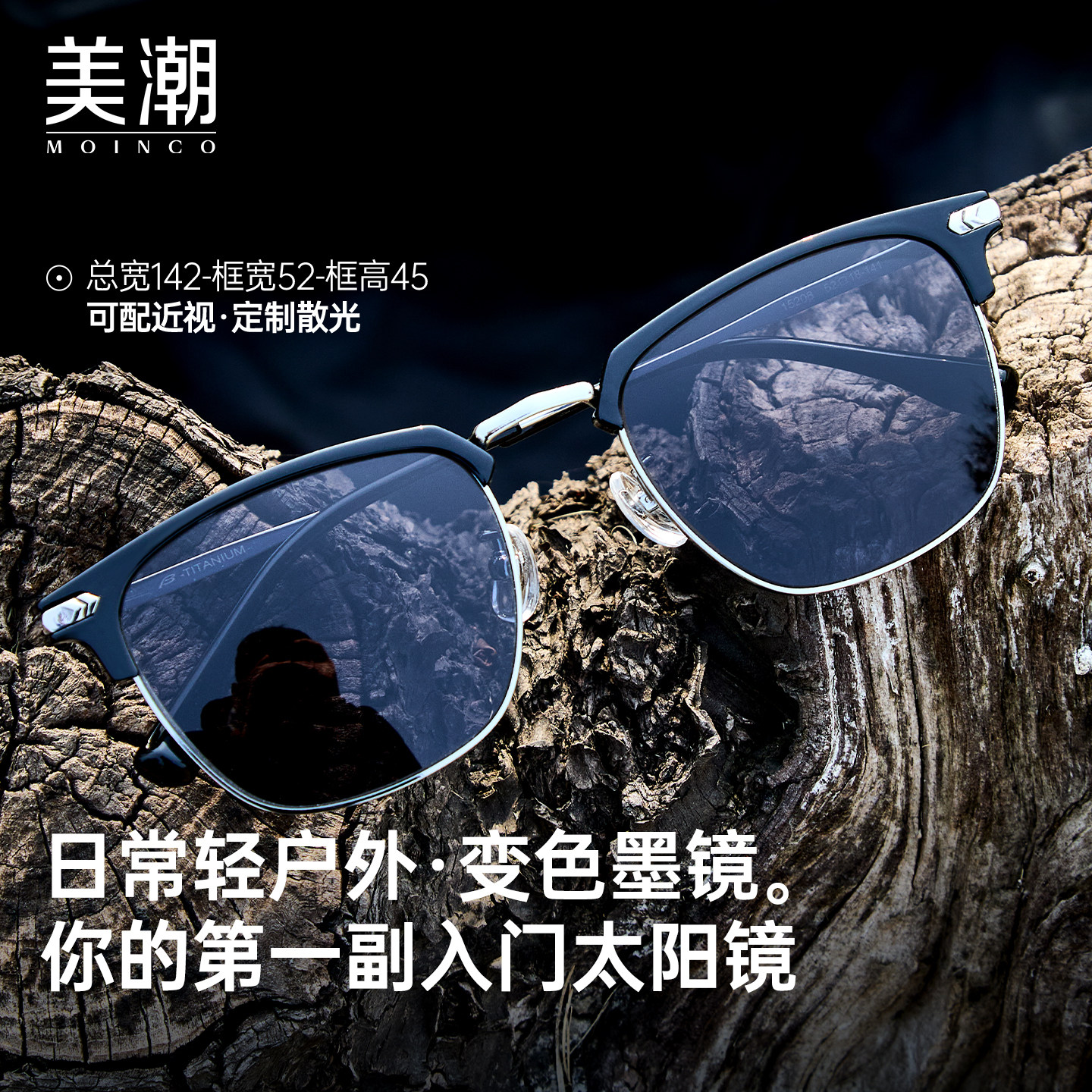 自动感光变色近视太阳镜男超轻纯钛眼镜框户外开车驾驶墨镜带度数