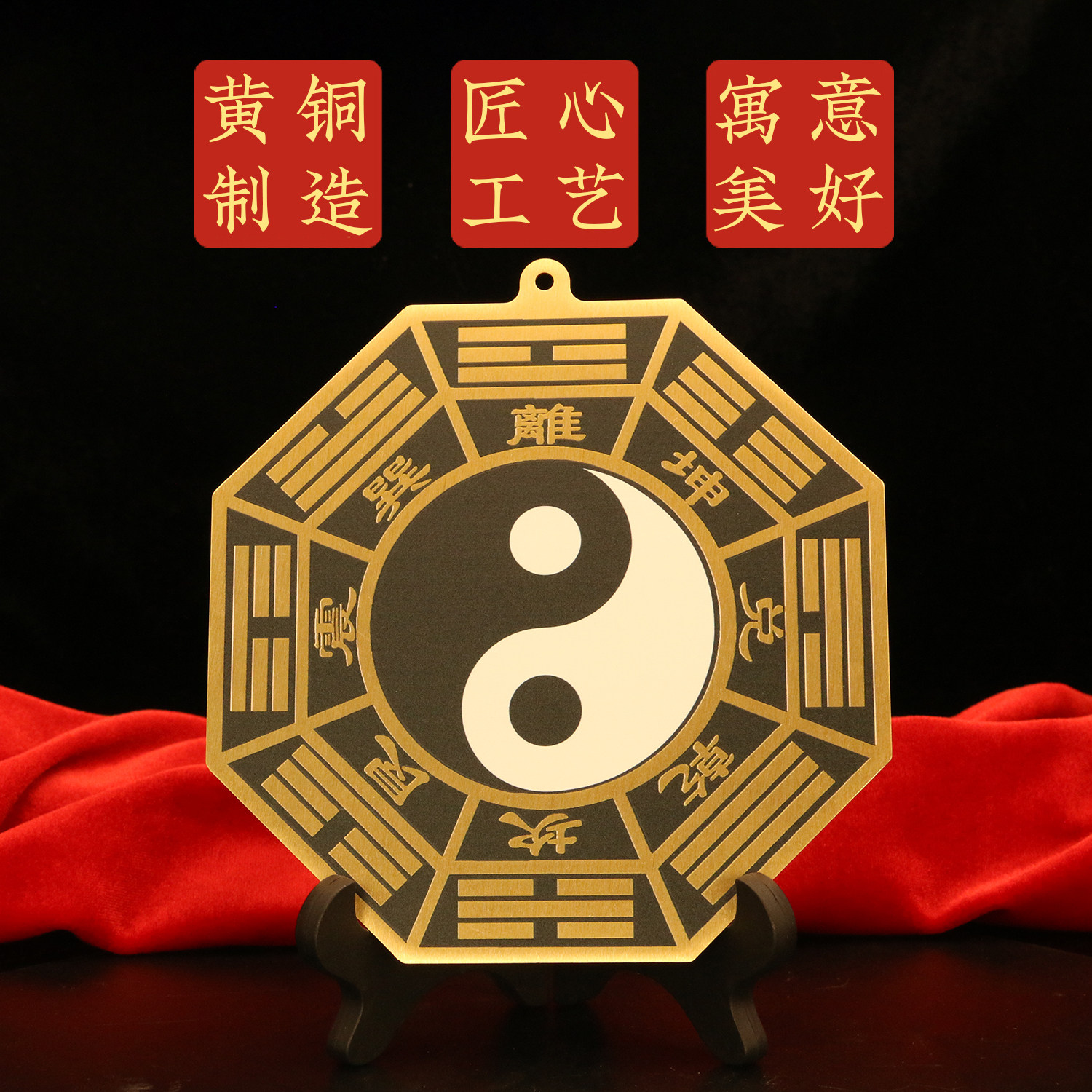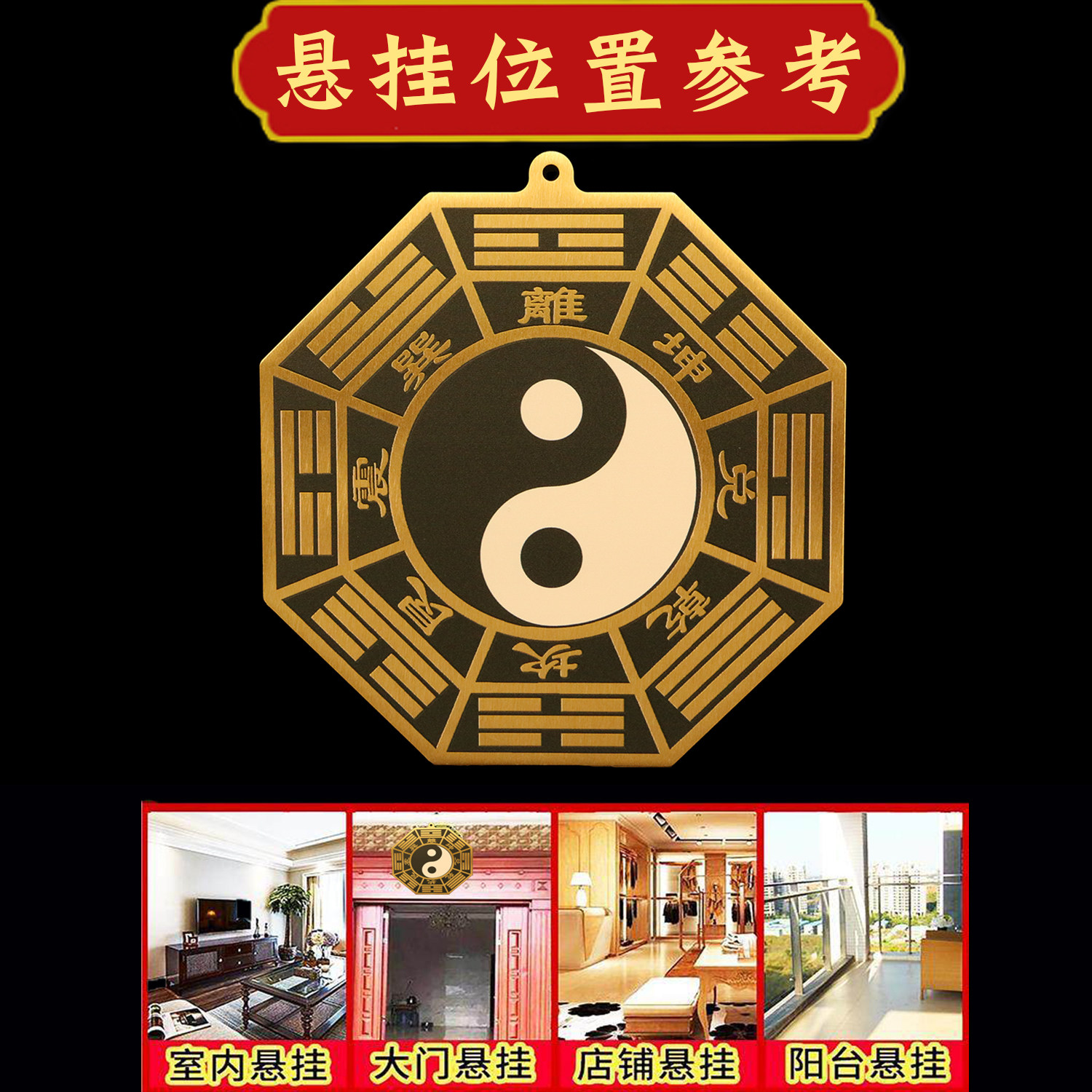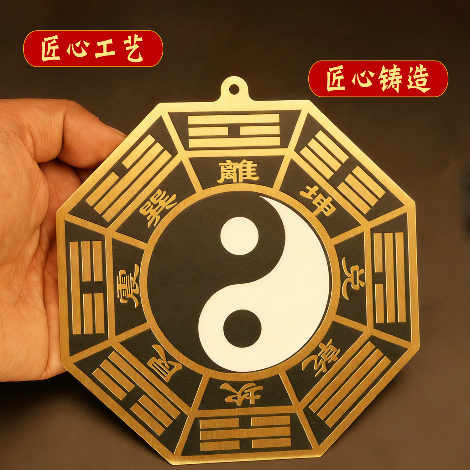黑白太极八卦镜大门口窗户商铺黄铜乾坤太极图太极八卦平面镜摆件